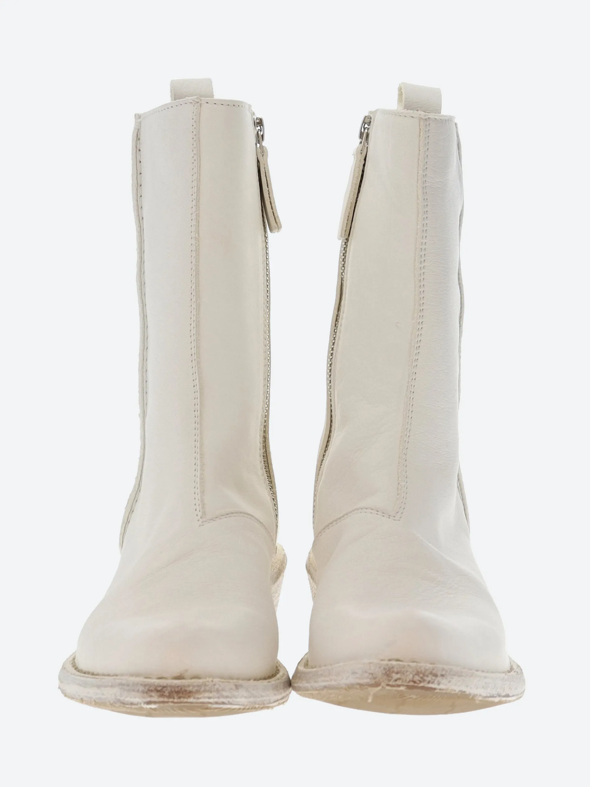 A timeless western-inspired leather boot with exposed inner zip closure, set on a stacked heel.