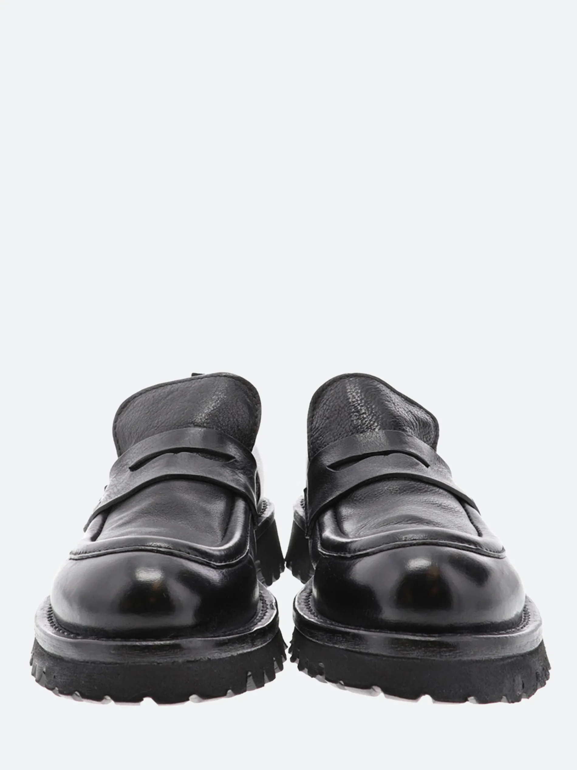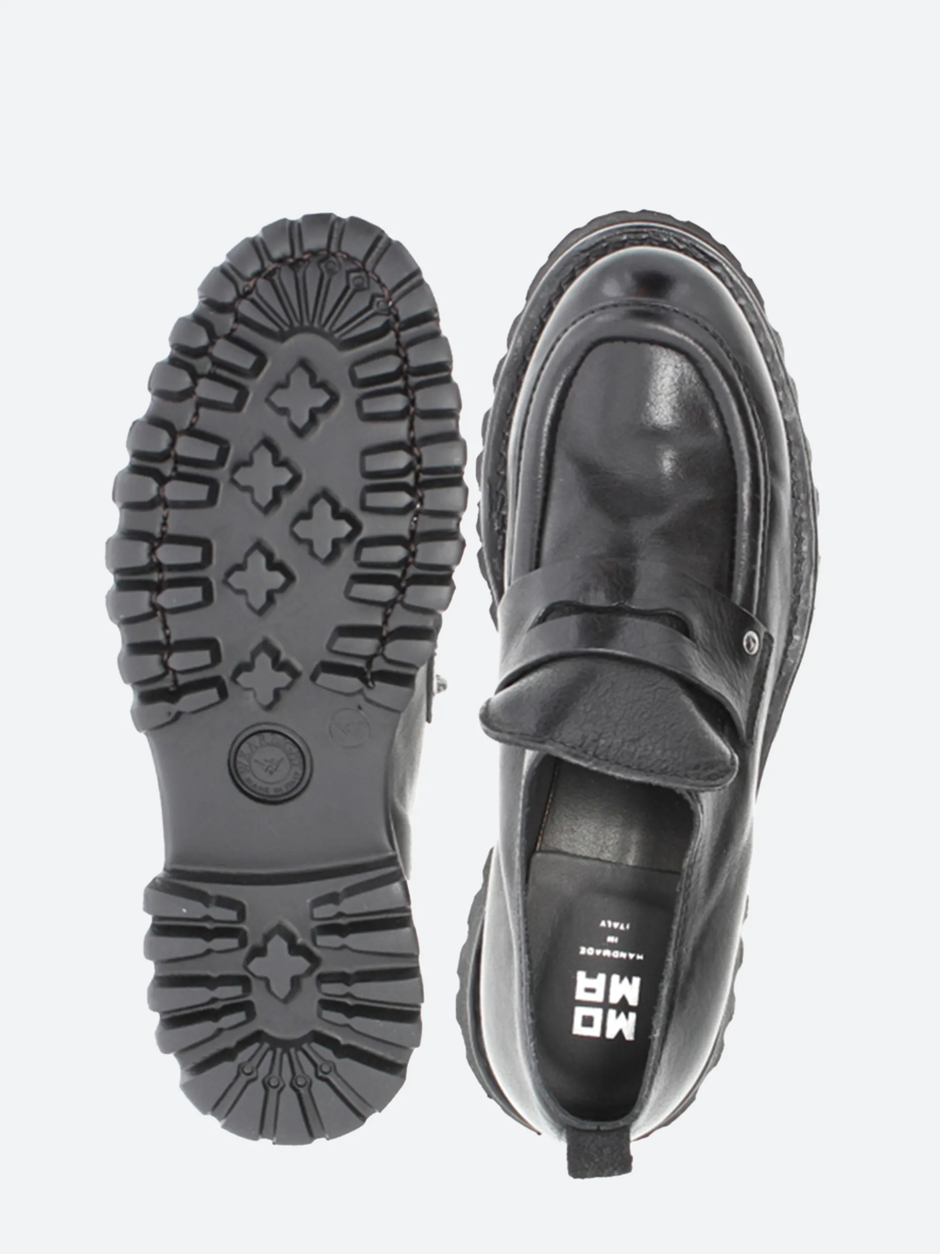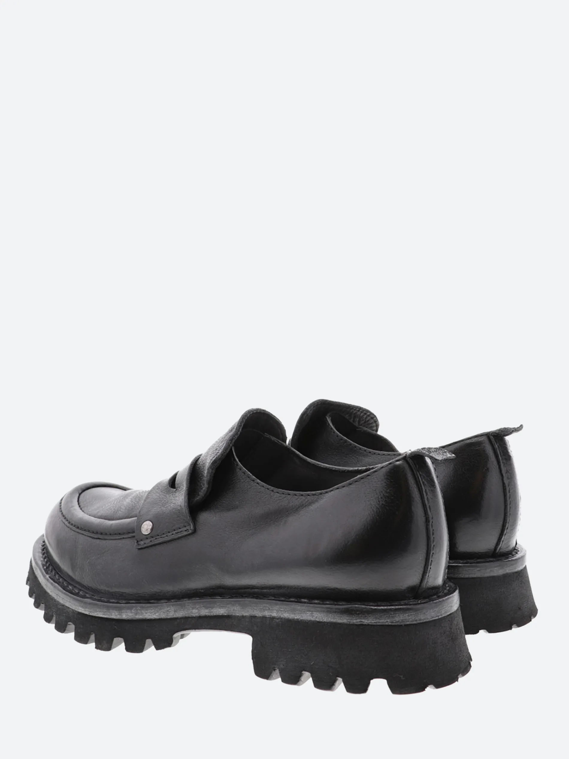 Moma penny loafer in vintage effect leather with a chunky lugged sole.