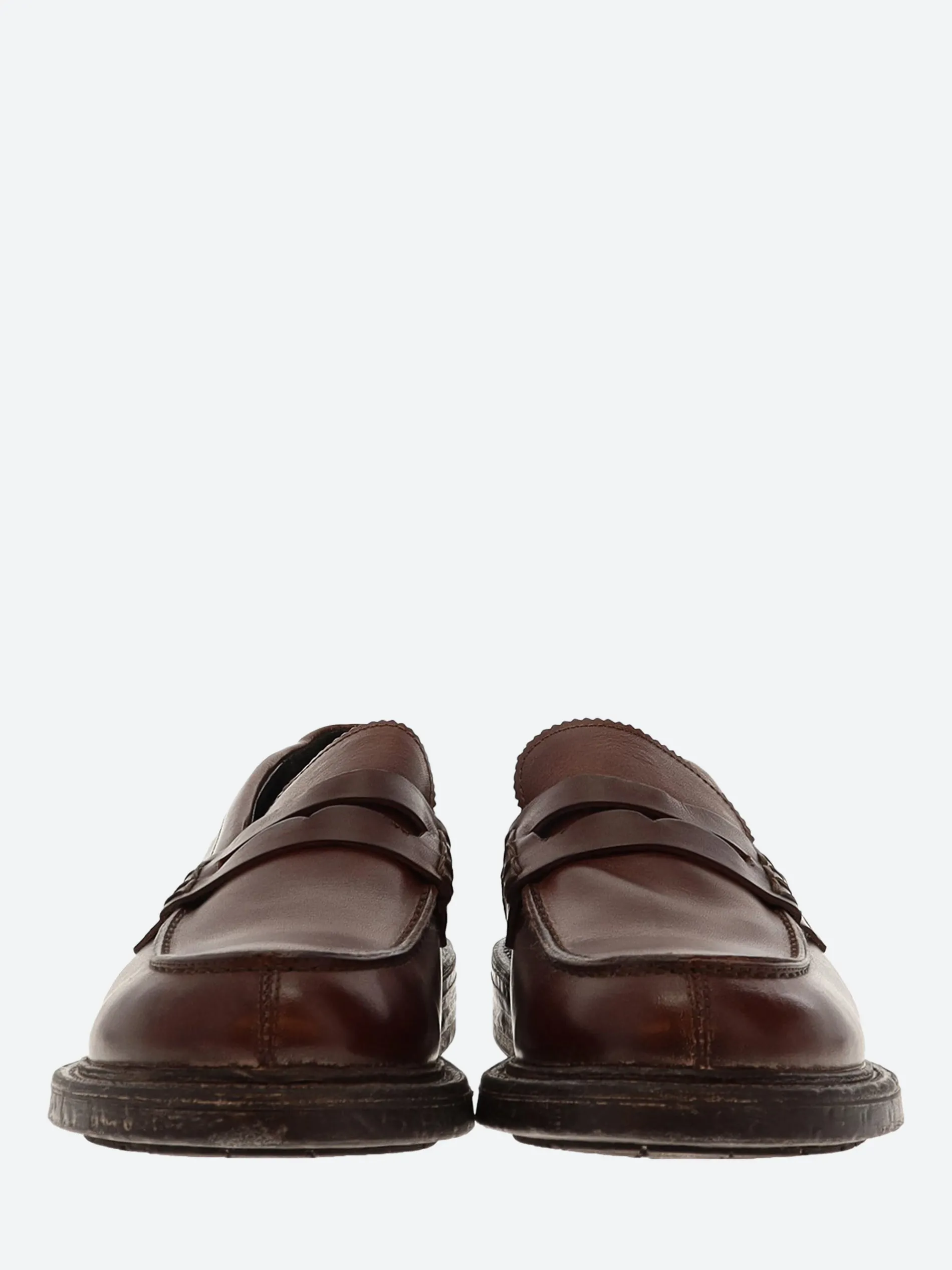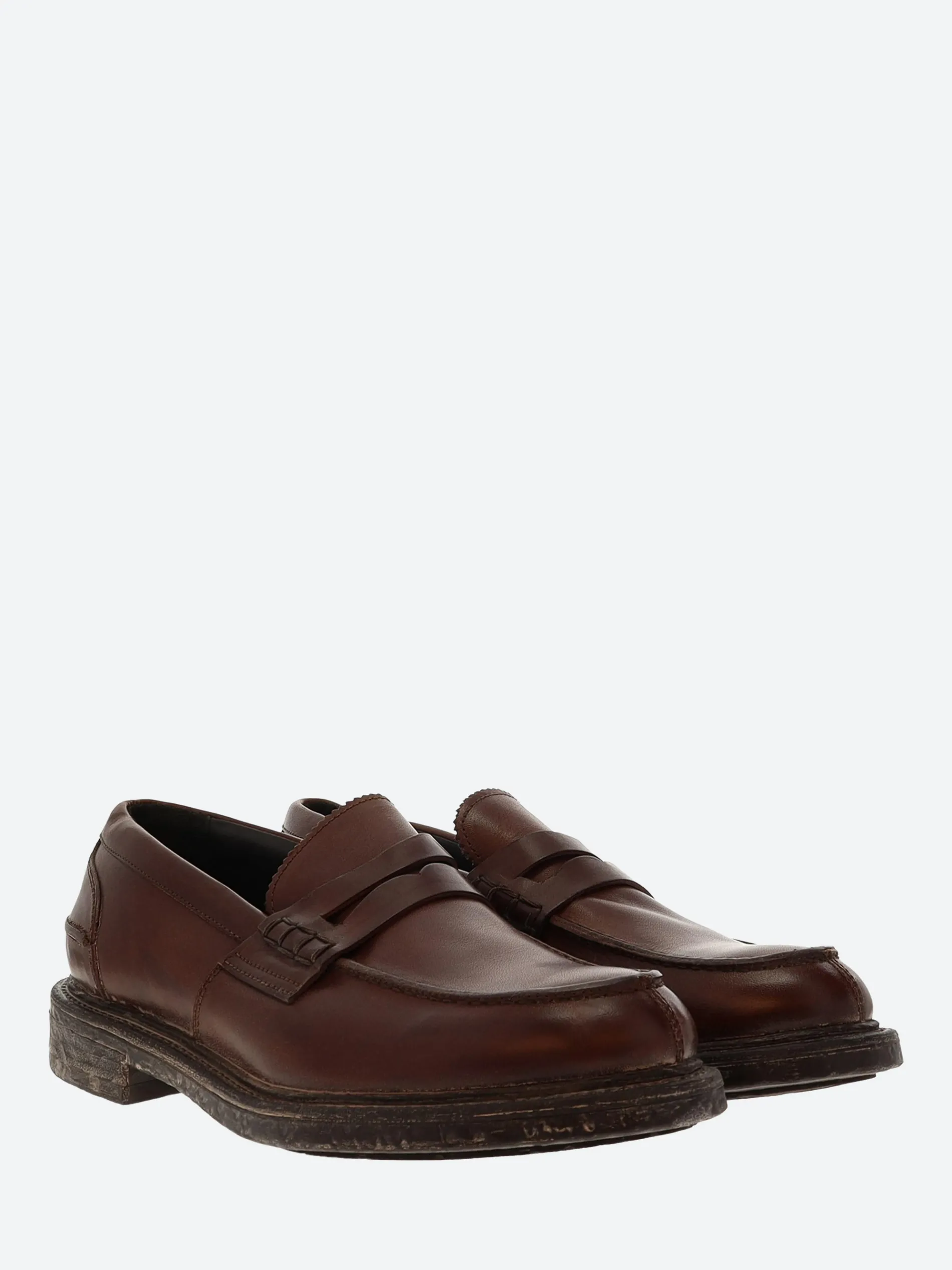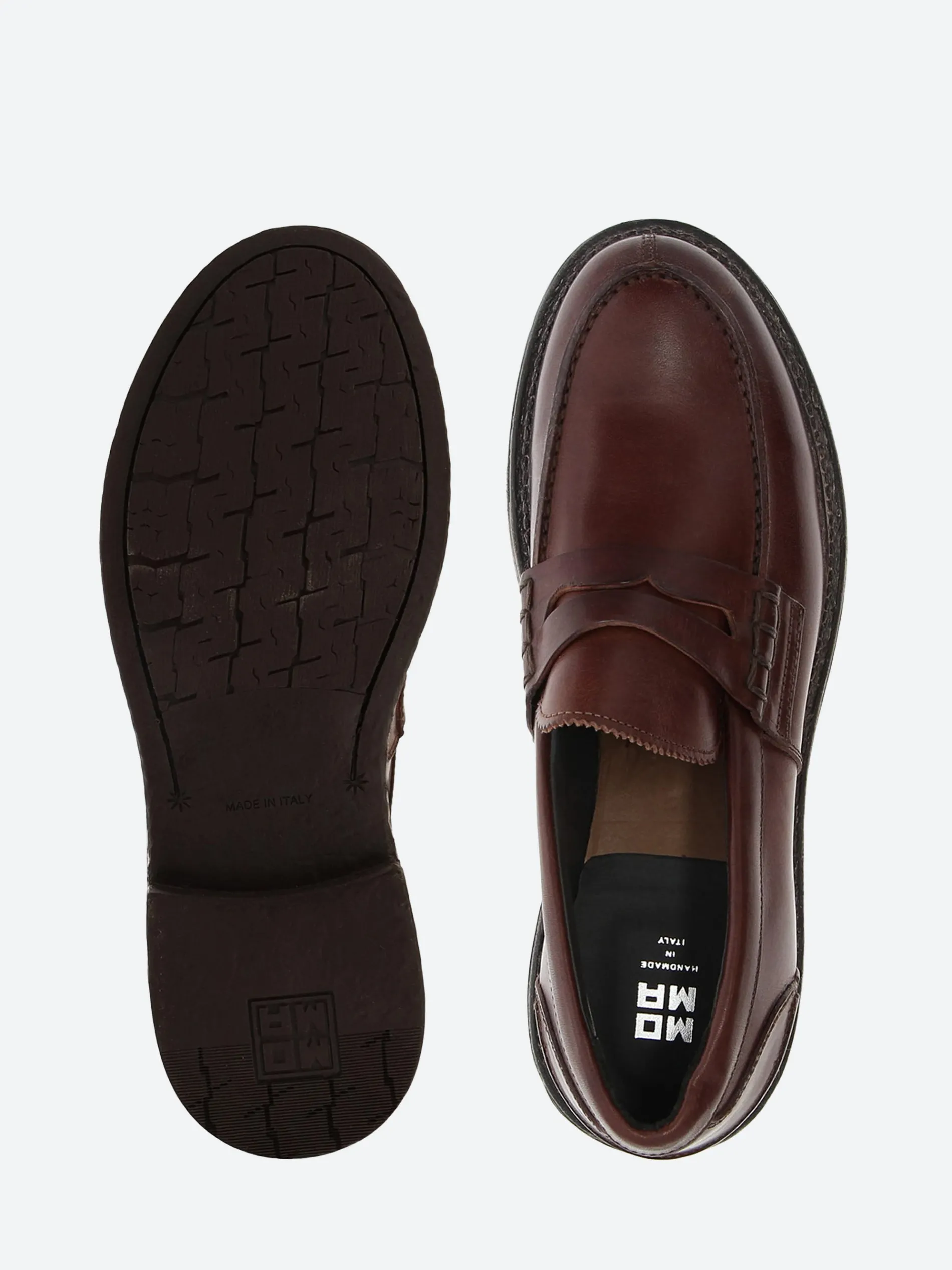 Vintage-inspired leather loafers from MOMA featuring a round toe and rubber sole.