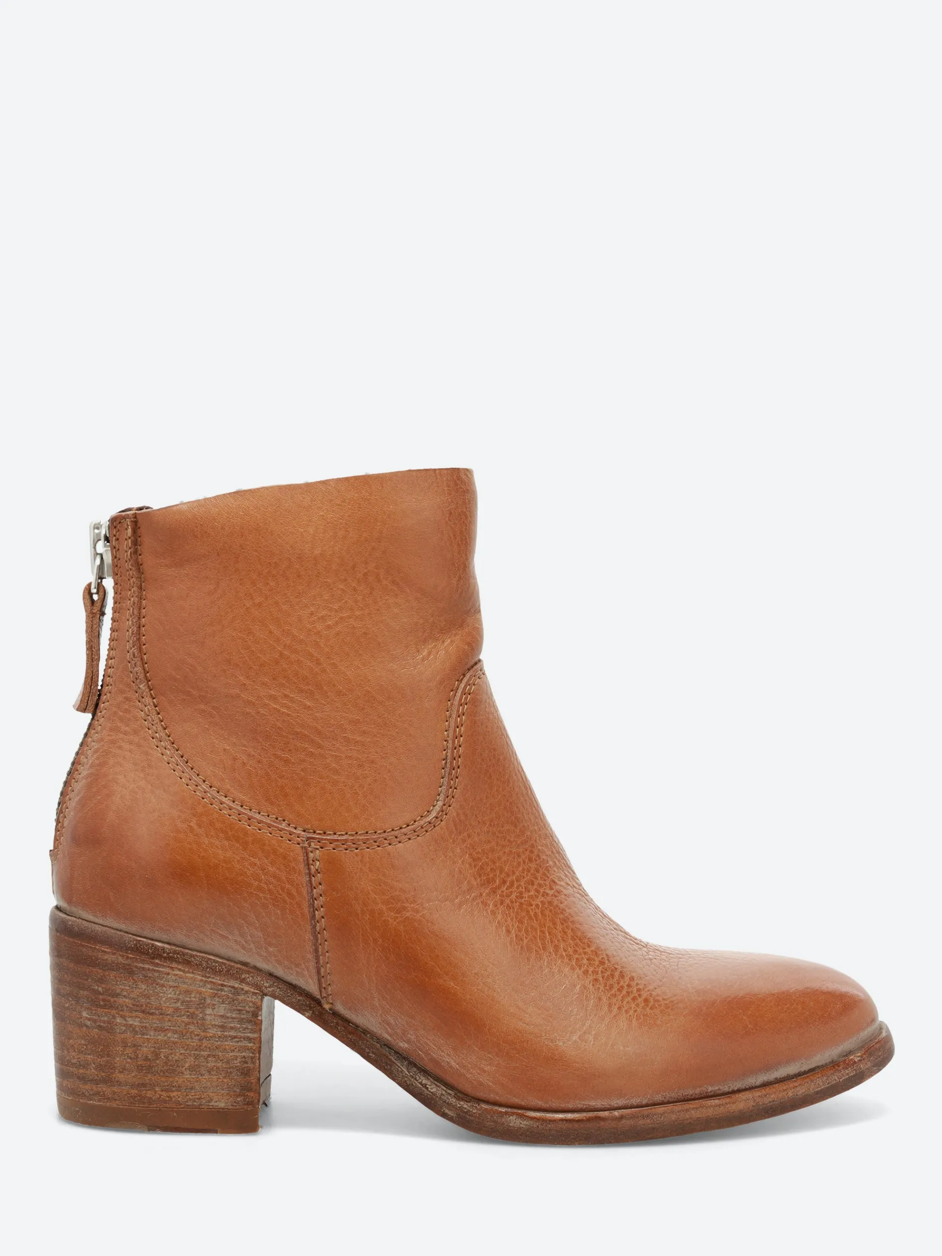 Moma’s ankle boots in vintage style leather. Featuring an almond toe and zip closure at heel, complete with rubber sole with non-slip rubber insert.