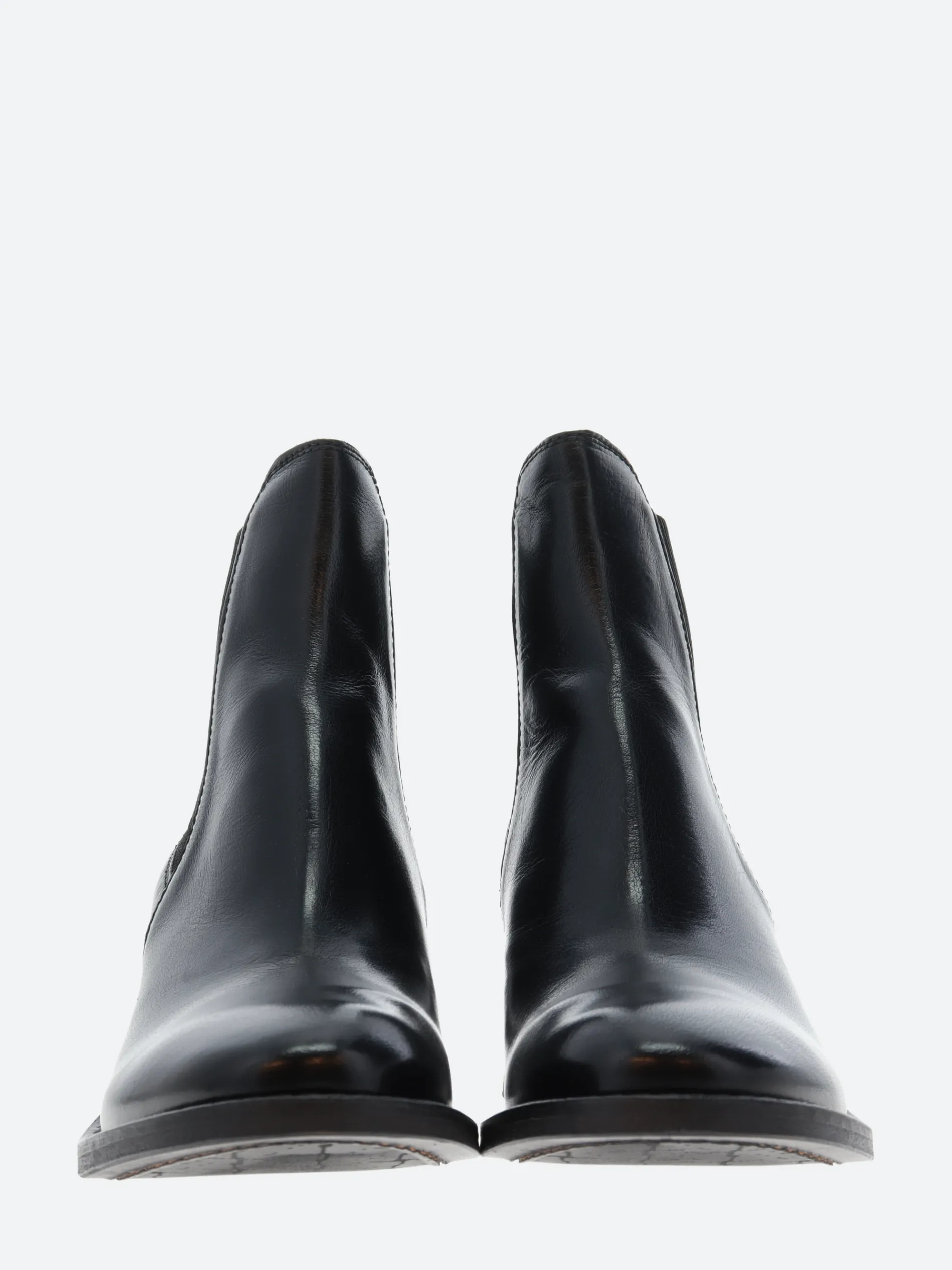 Masterfully handmade from Italian leather, this heeled MOMA Chelsea boot boasts elasticated gussets for easy entry.