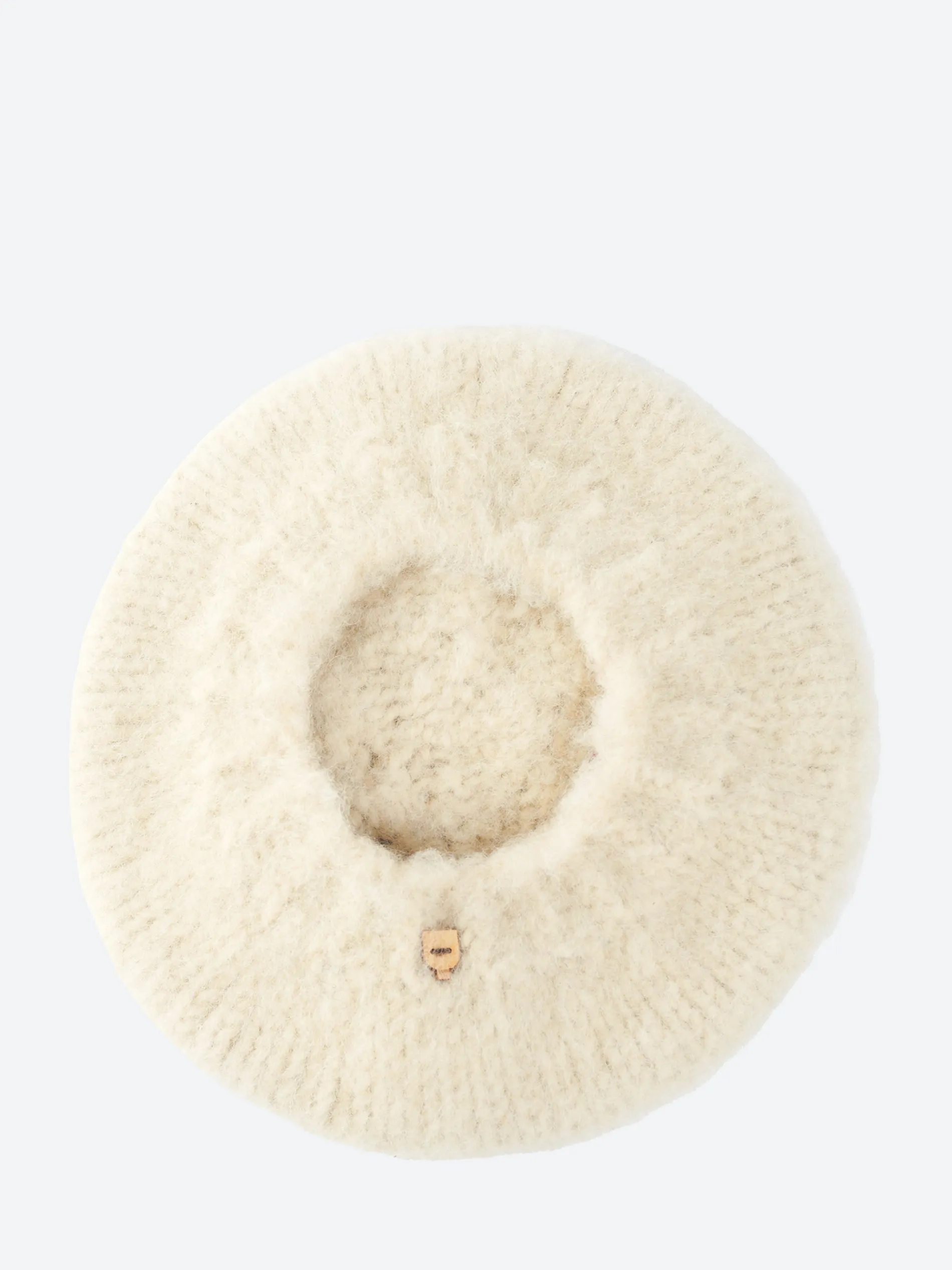 Hand-knit from chunky, undyed wool, this soft fluffy beret looks like it was brushed with snow.