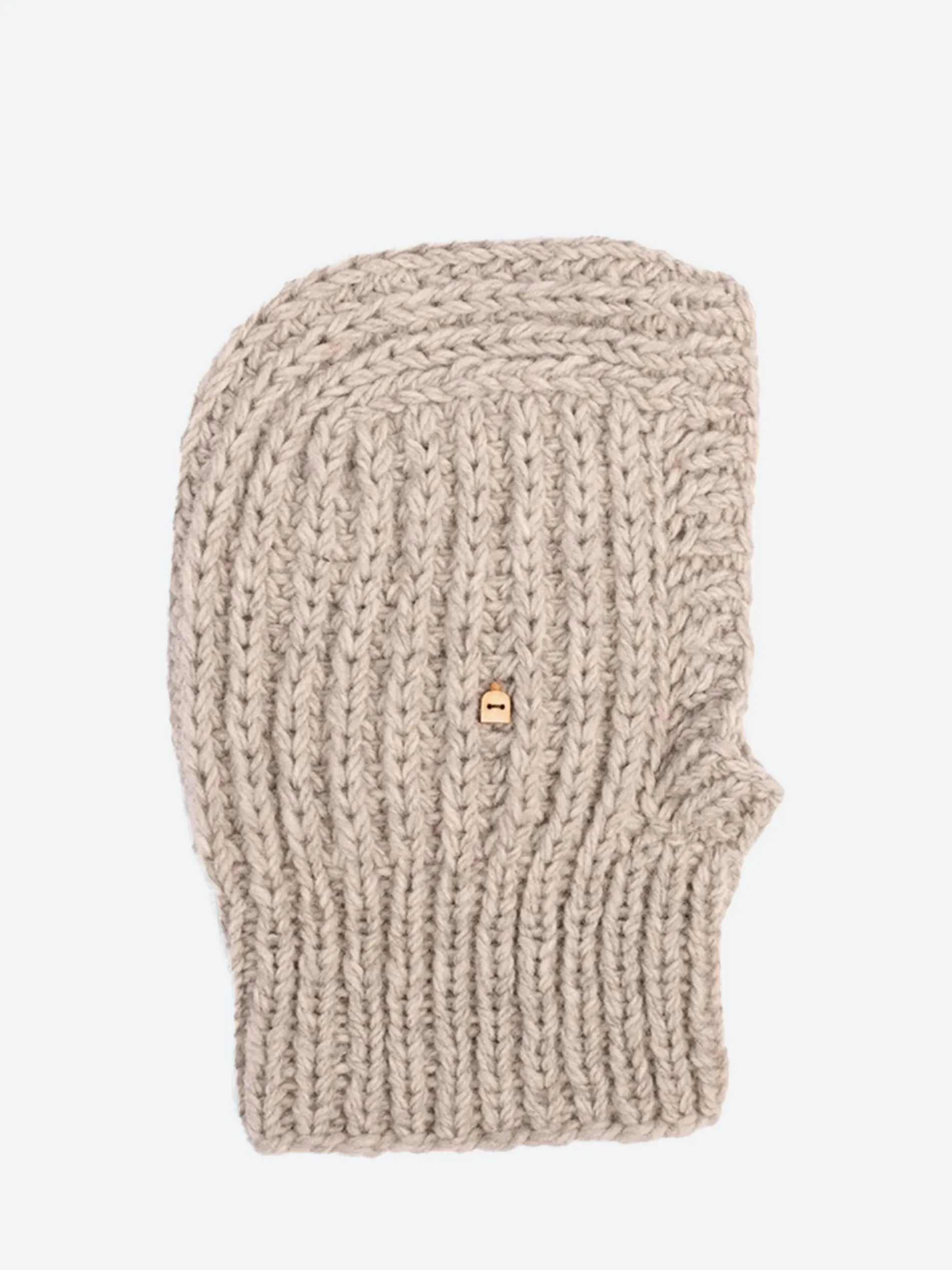 Myssy hood hand-knitted from 100% organic Finnish sheep wool. The product is undyed, the shade is created when different coloured wools are mixed during spinning.