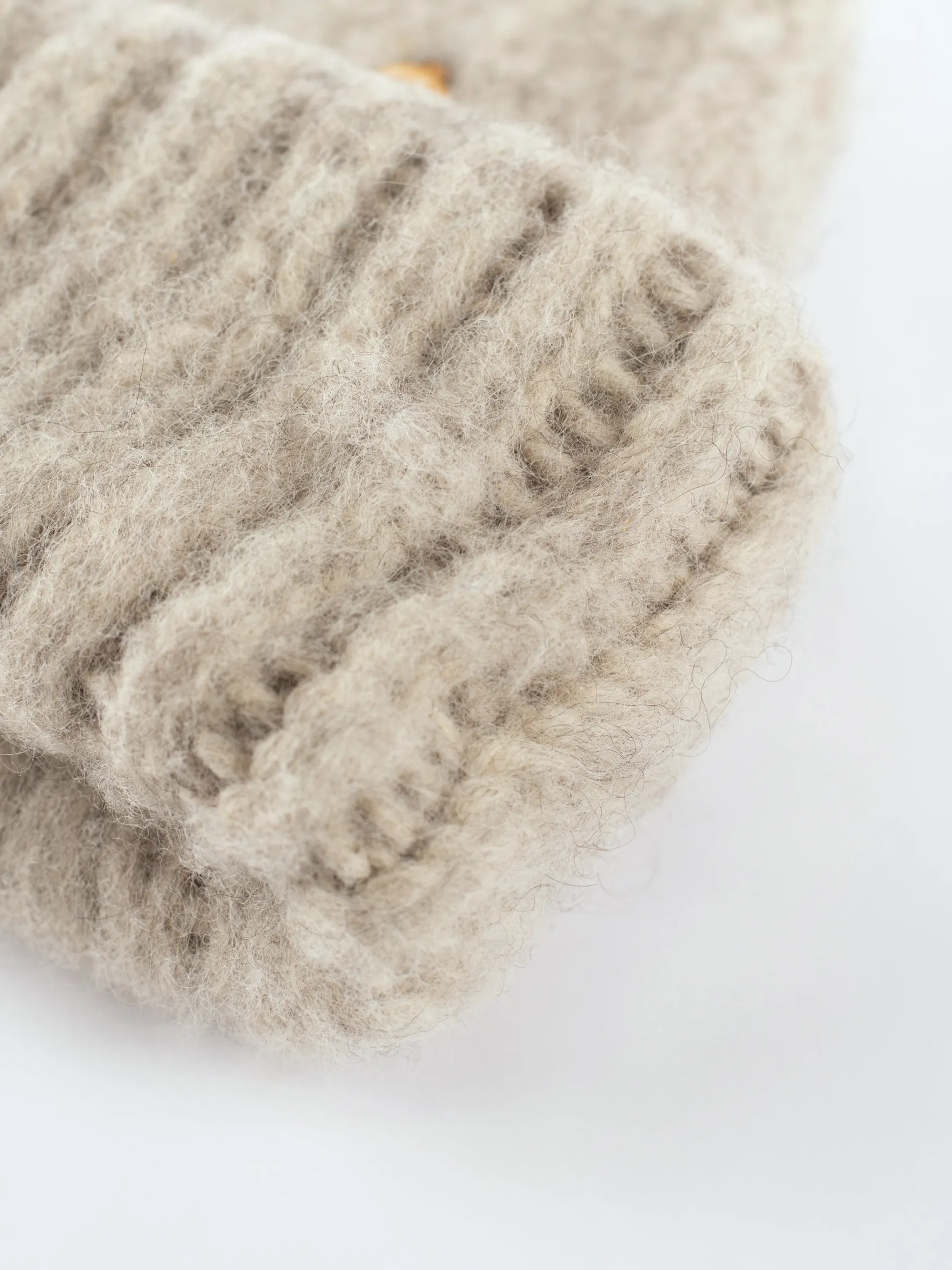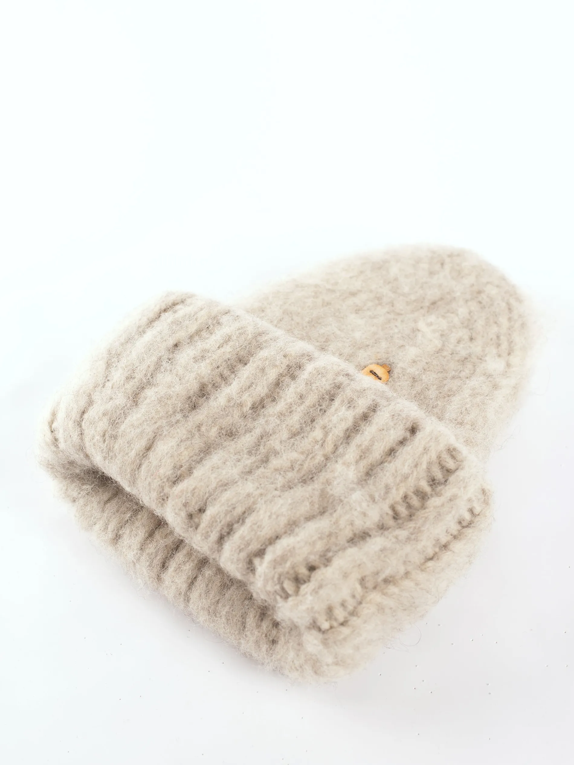 Hand-knit from chunky, undyed wool, this oversized beanie has been brushed for a soft, fluffy finish.