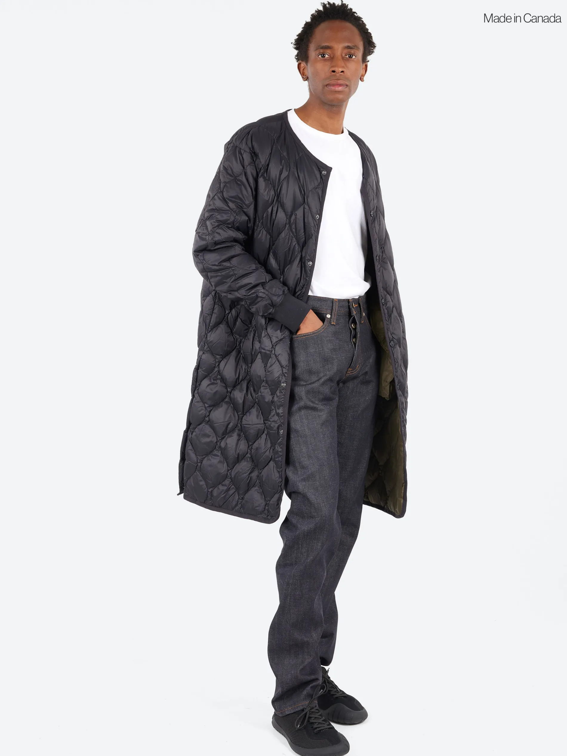 The Forever Blue Selvedge is a 12.5oz Japanese Selvedge Denim, distinctively dyed with a permanent reactive dye to achieve a lasting dark indigo color. Unlike the typical fading denim which is rope-dyed, leaving the core of the exterior warp yarns white, the yarns in the Forever Blue Selvedge are dyed through to the core. This means that even with extensive wear, the fading will be significantly reduced, perfect for those who prefer to maintain the look of raw denim over time.