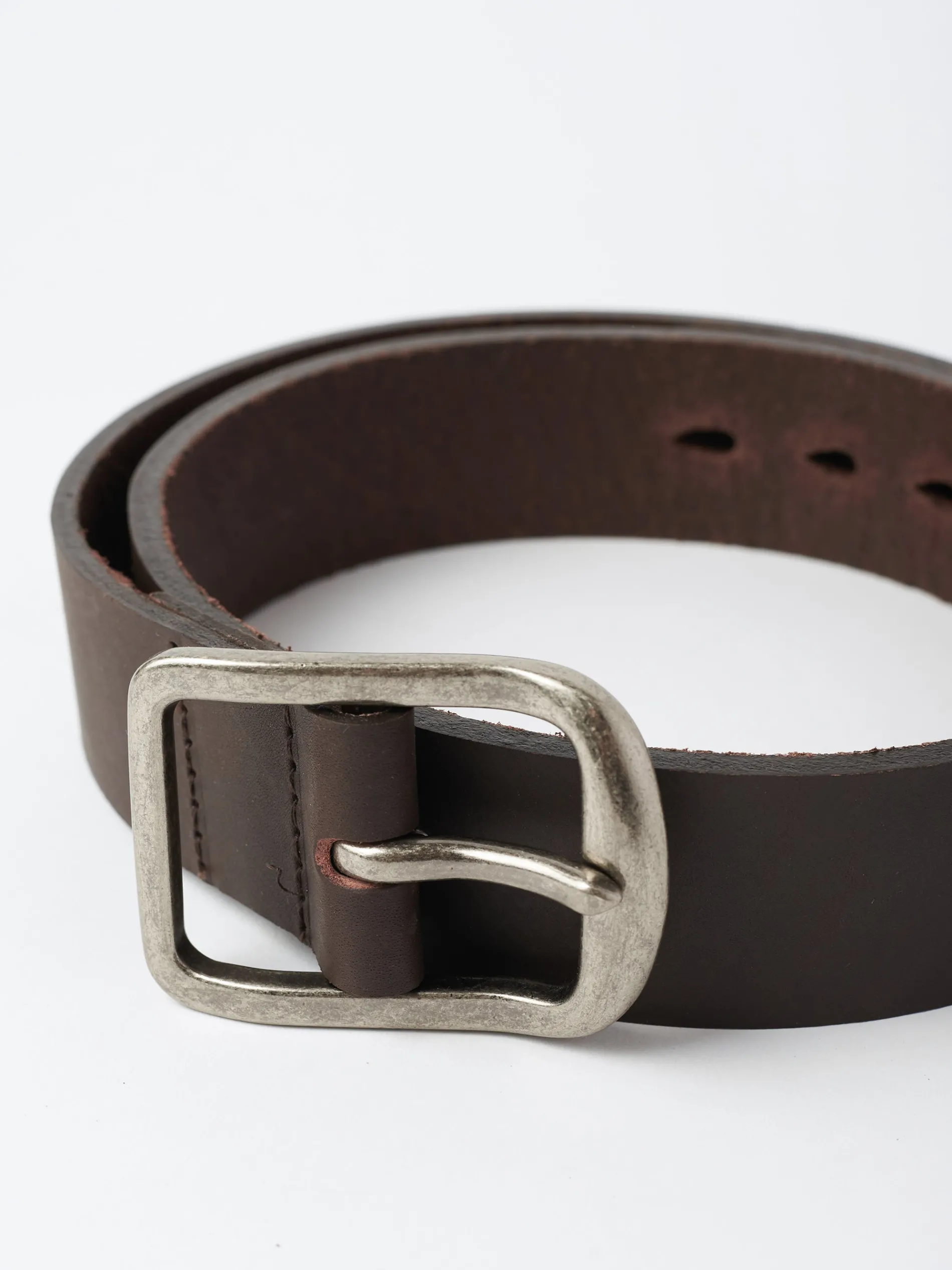 Chunky wide belt made with super thick bovine leather. This oil-treated leather will age beautifully with wear like your raw denim.