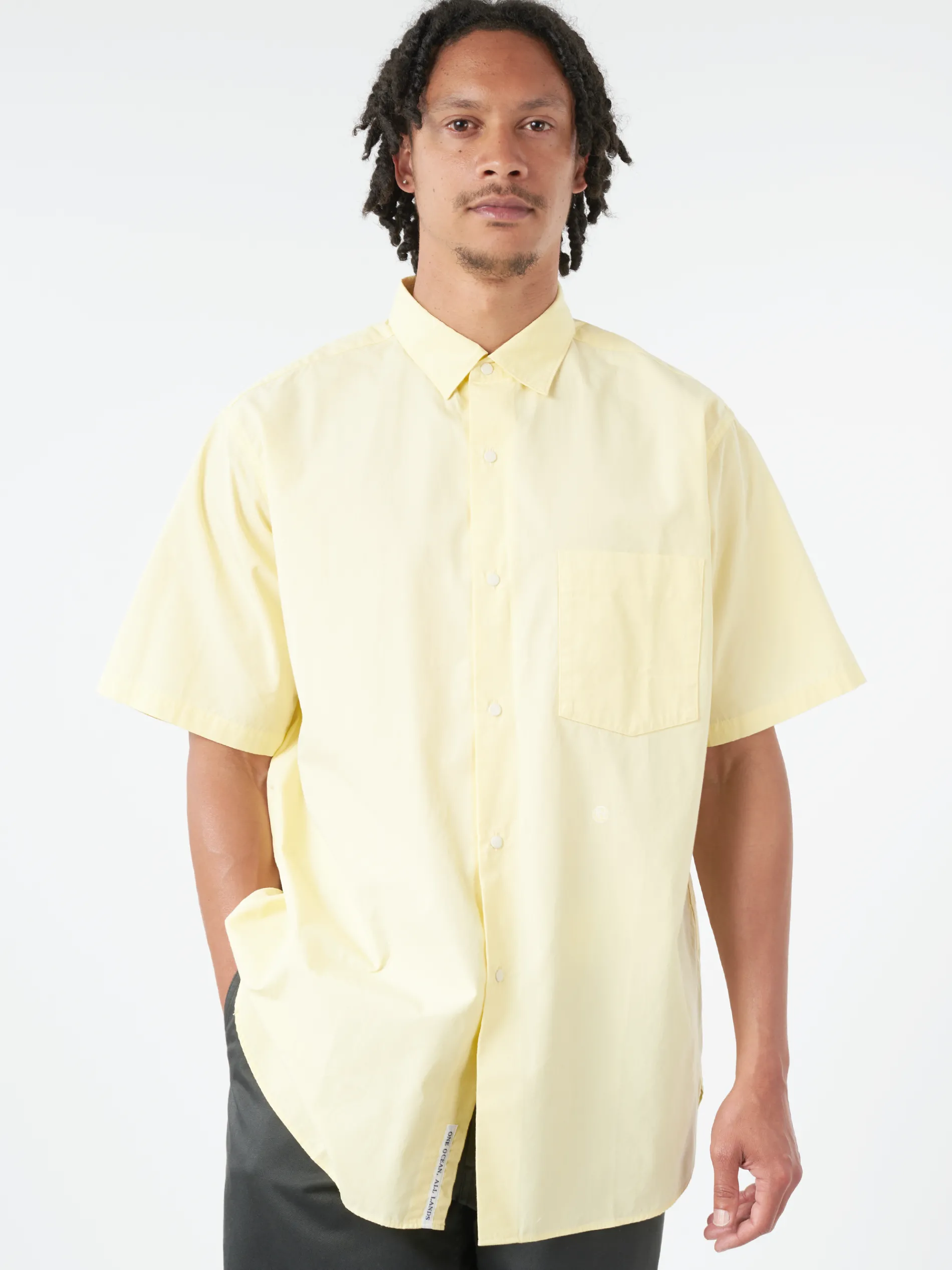 Nanamica regular collar shirt made from broadcloth fabric. Made from an original hybrid material with the texture of cotton and the added functionality of being lightweight, durable, and fast drying.