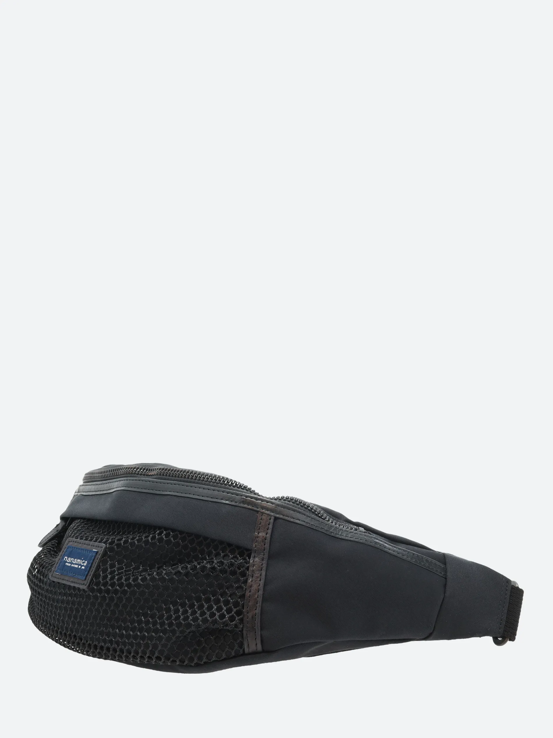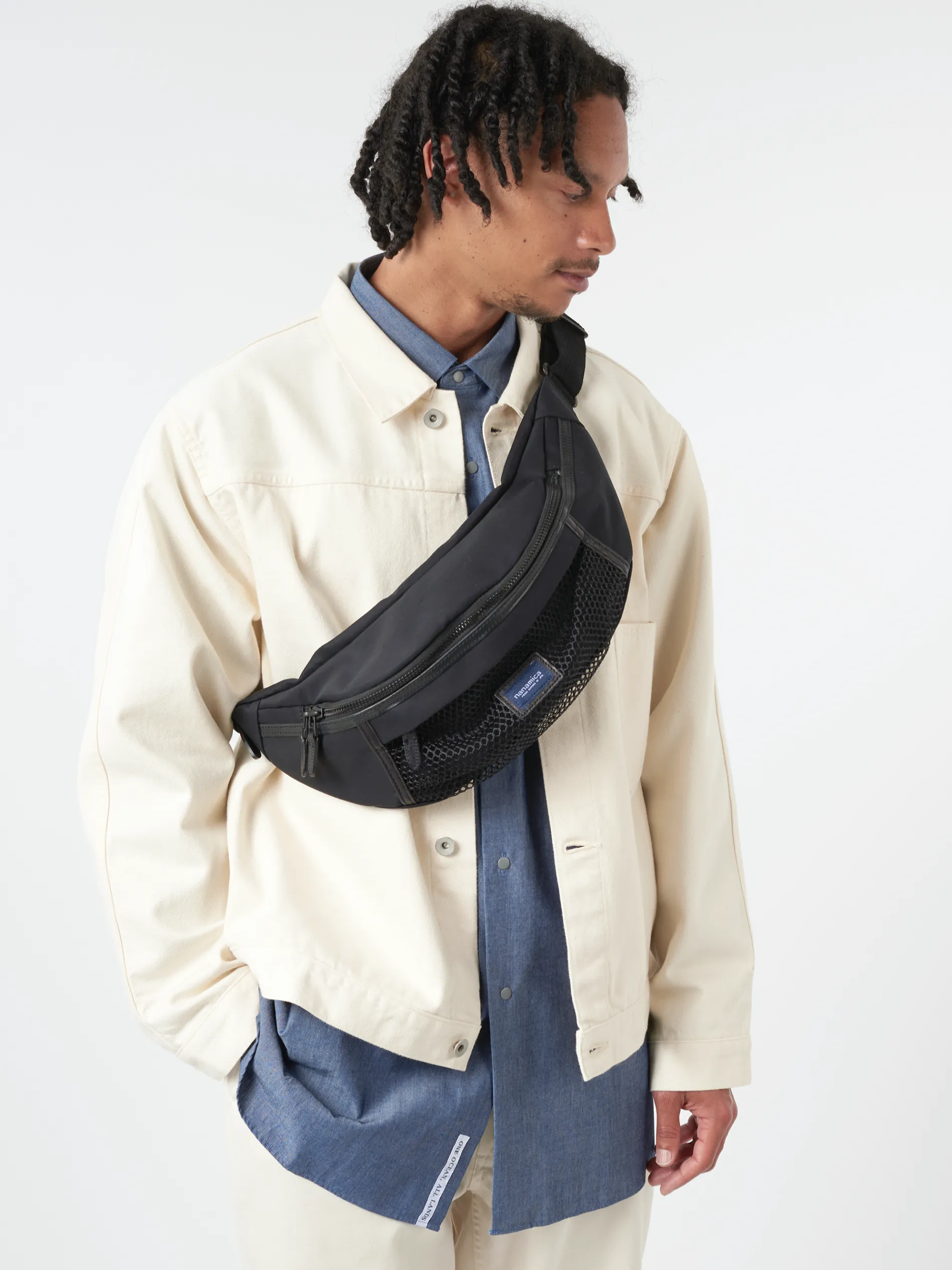 A belt bag that incorporates the design of a hunting game bag. Made of a durable water-repellent cotton twill material, bonded with a waterproof breathable film and nylon, creating an original three-layer fabric.