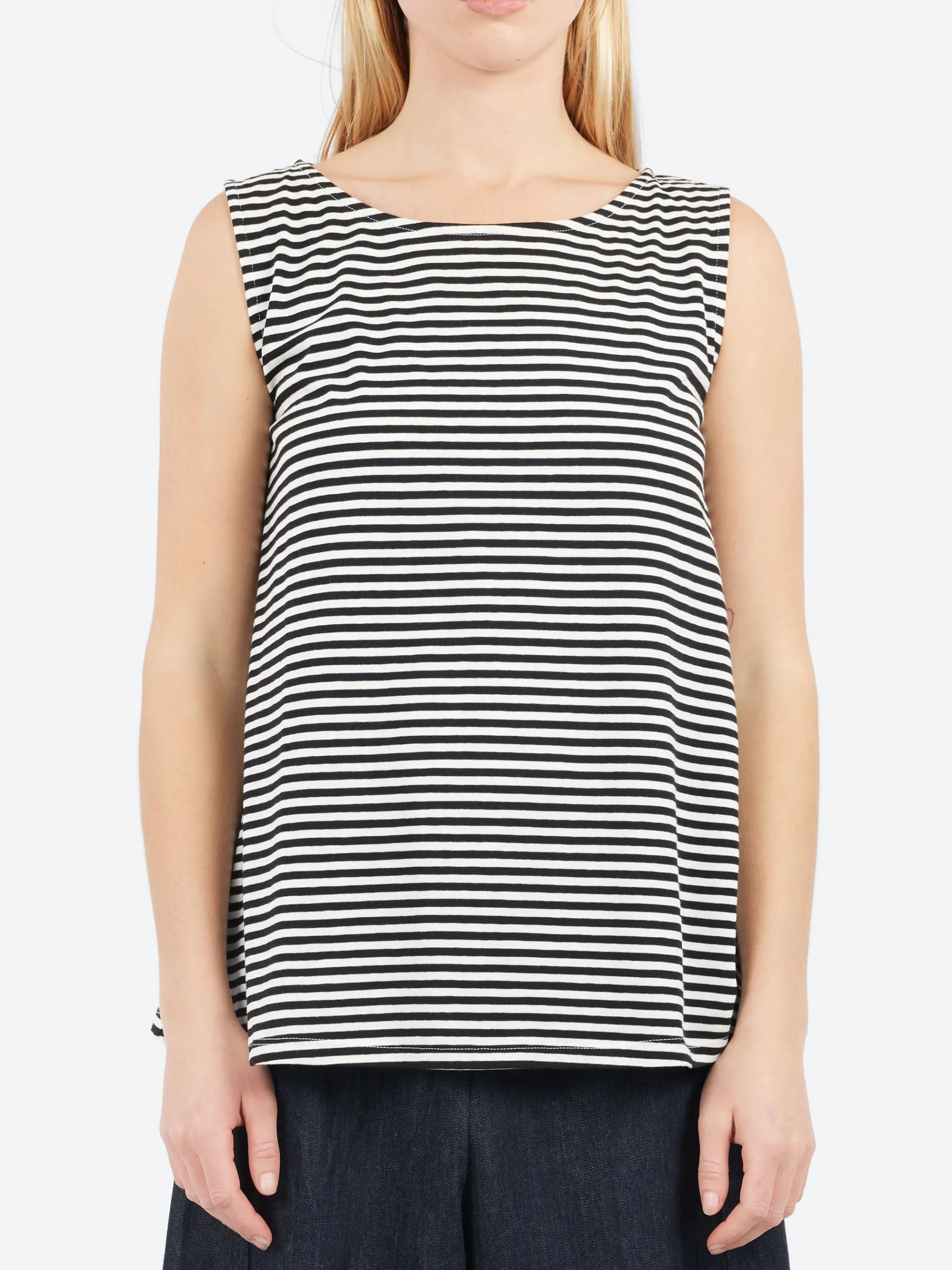 Neirami flared tank top with a wide crew neck in stretch striped cotton jersey. Cut for a soft fit which is the traditional fit from the brand. The lines are wide and deliberate for a more comfortable and dynamic garment.