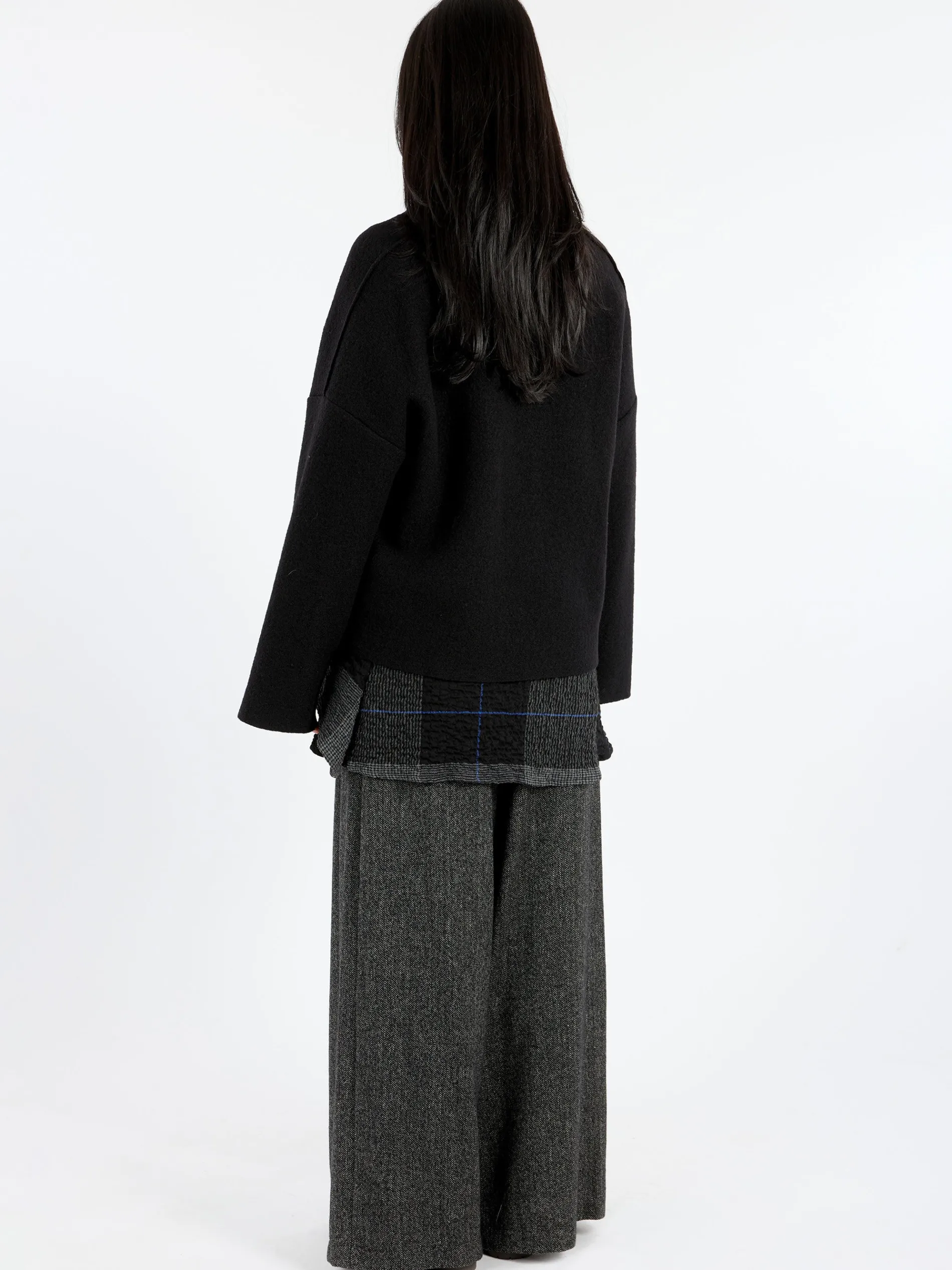 Neirami short jacket with a standing neckline. The fit is relaxed and intentionally done so the garment is more comfortable and dynamic.
