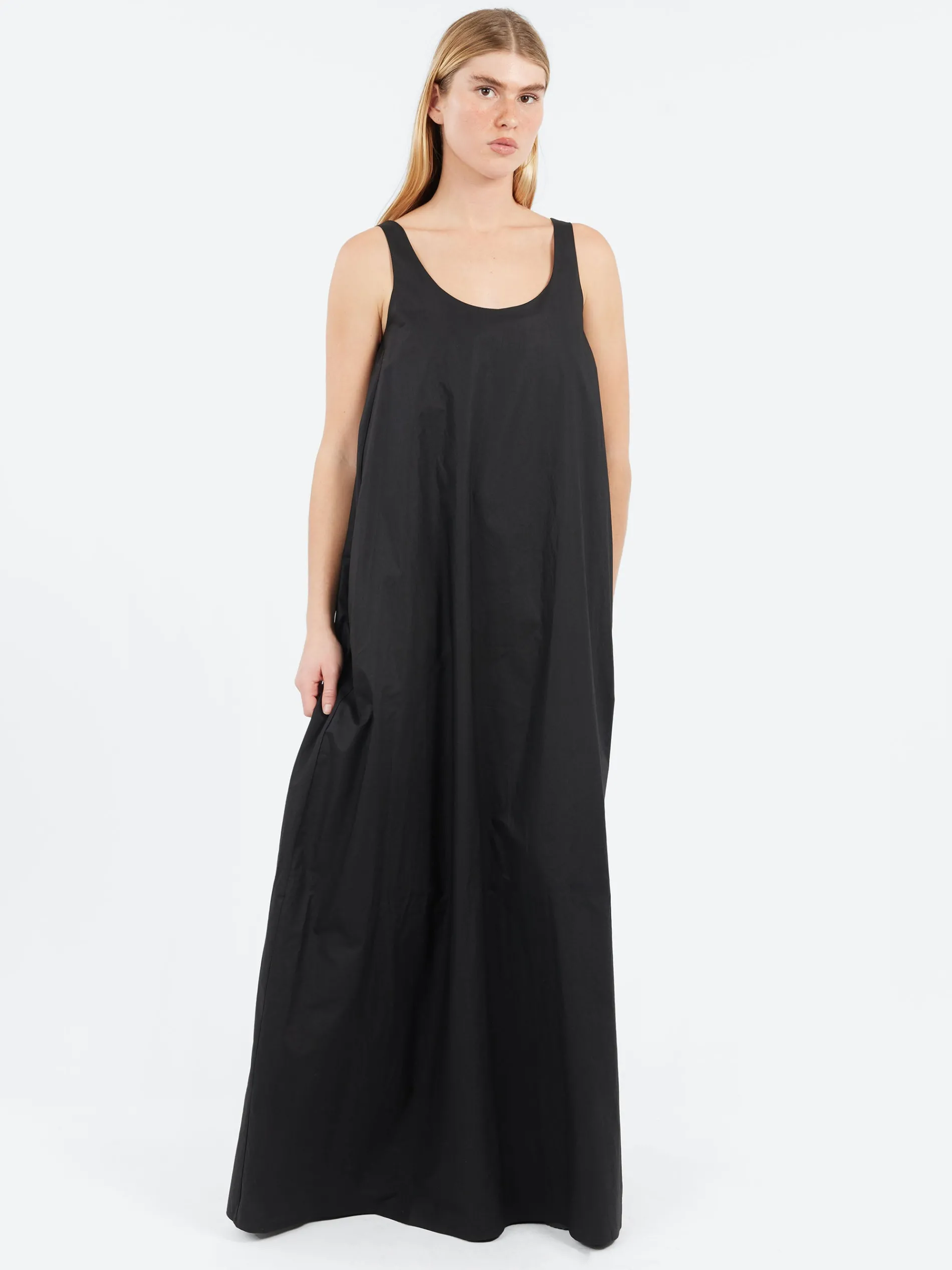 The Neirami long dress features flared lines that gracefully follow the body, never clinging to the waist or hips. With a round neckline and sleeveless design, this dress embodies the relaxed fit that forms the foundation of the Neirami silhouette.