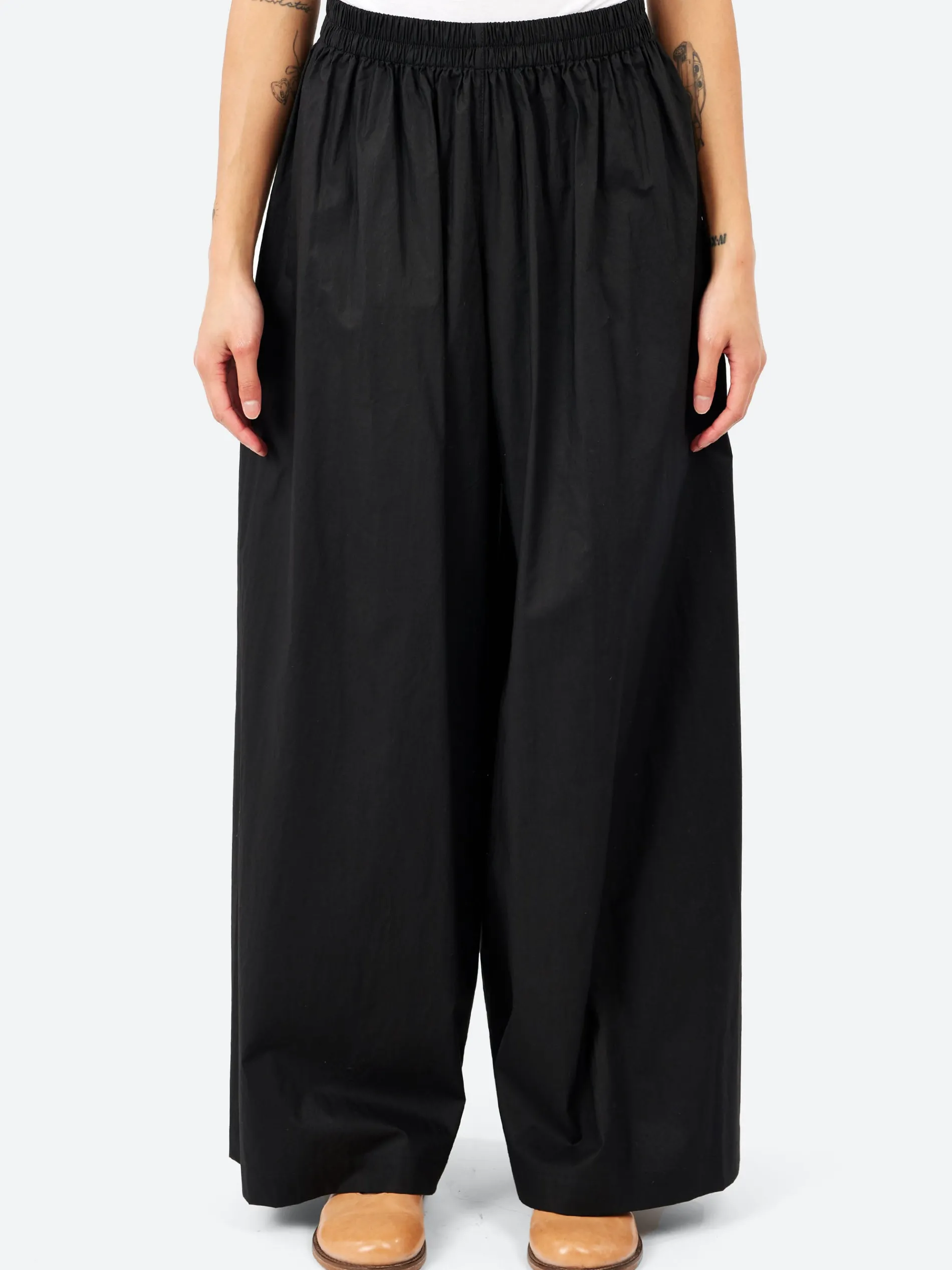 These Palazzo Trousers embody the relaxed fit central to the Neirami silhouette. With intentionally spacious, wide lines, they offer a dynamic and comfortable look. The elastic waistband provides a soft, comfortable fit around the hips, making these trousers both stylish and easy to wear.
