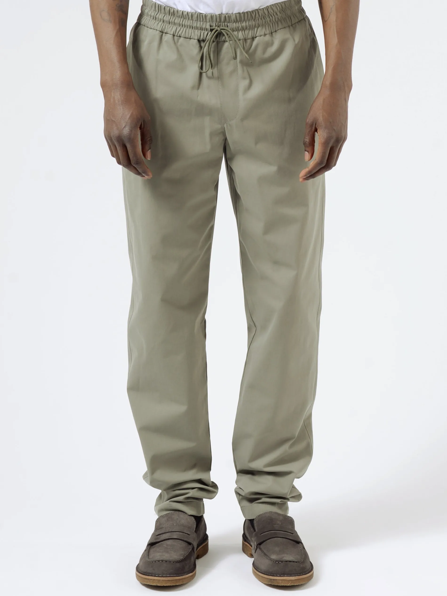 A.P.C. pants in cotton weave and a tapered leg. This laid-back silhouette is finished with a drawstring waist.