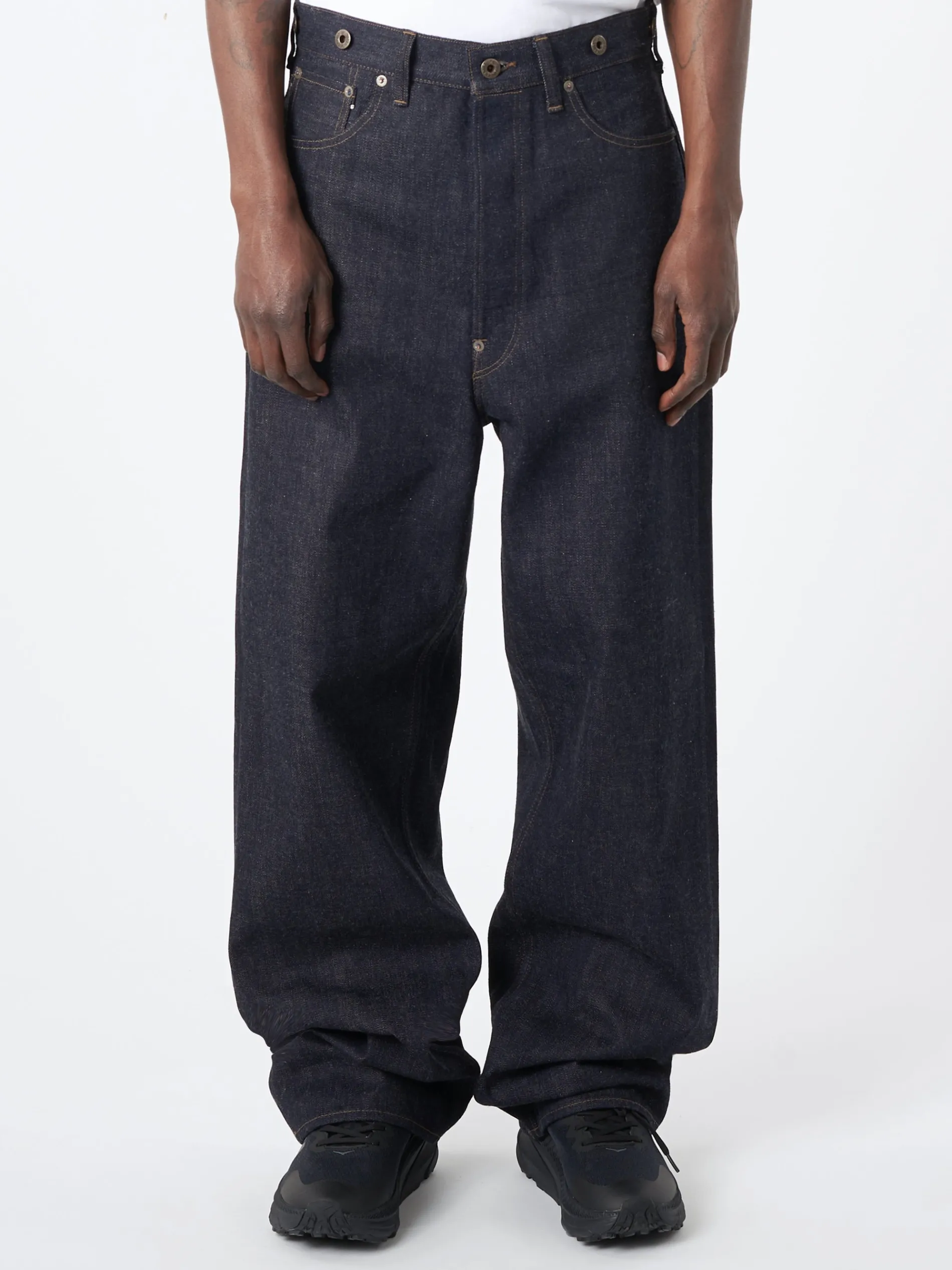 Inspired by a pair of vintage jeans worn by French rail workers in the 1920’s, these pants have a deep rise and a relaxed leg. Made from a unique denim that was specially made for this collection, the feel of this fabric is complex and and naturally uneven.