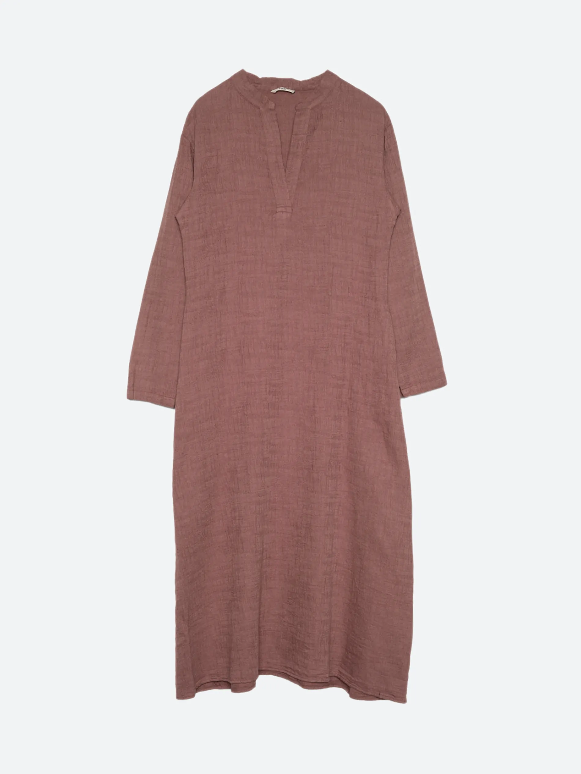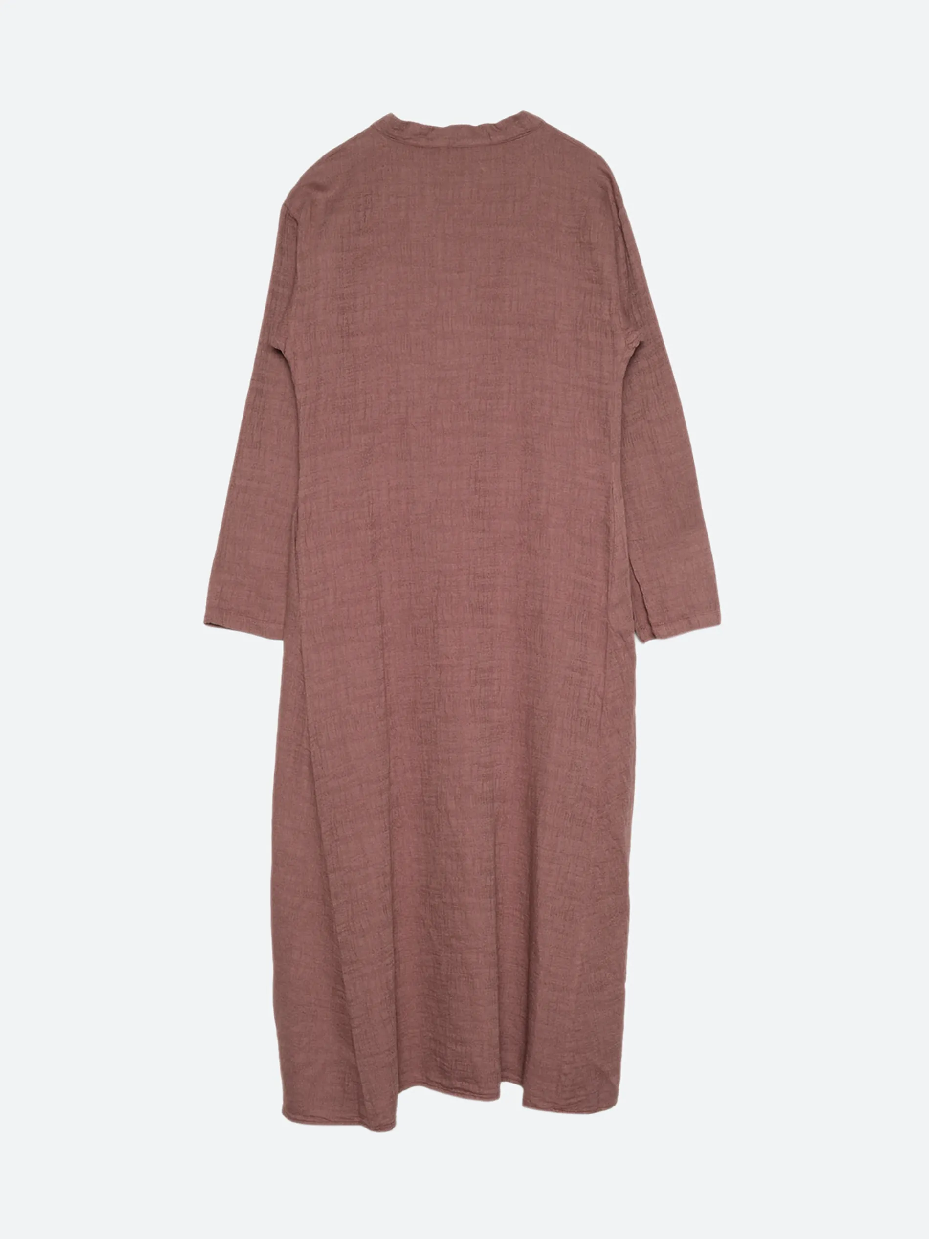 Minimal stand up collar kaftan-like long sleeve dress. Made in a super light jacquard cotton linen.