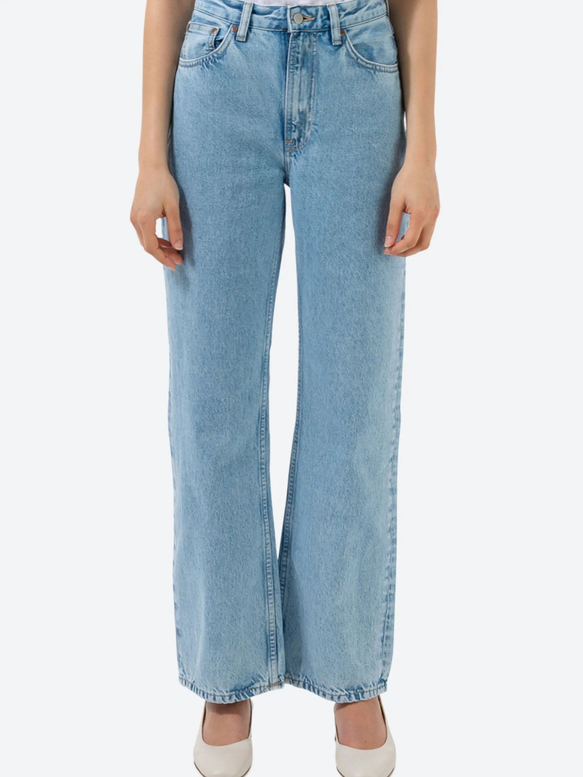 Nudie Jeans Clean Eileen high waist loose fit jeans with a wide leg. Finished with a 90s stonewash for an authentic, worn-in look and feel.