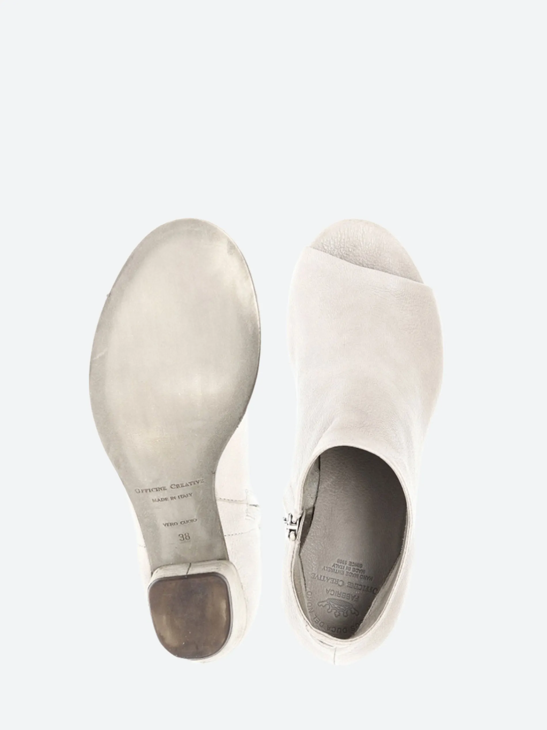 Officine Creative Adele zipped sandals in leather. Stitched custom leather sole and handcrafted in Italy.