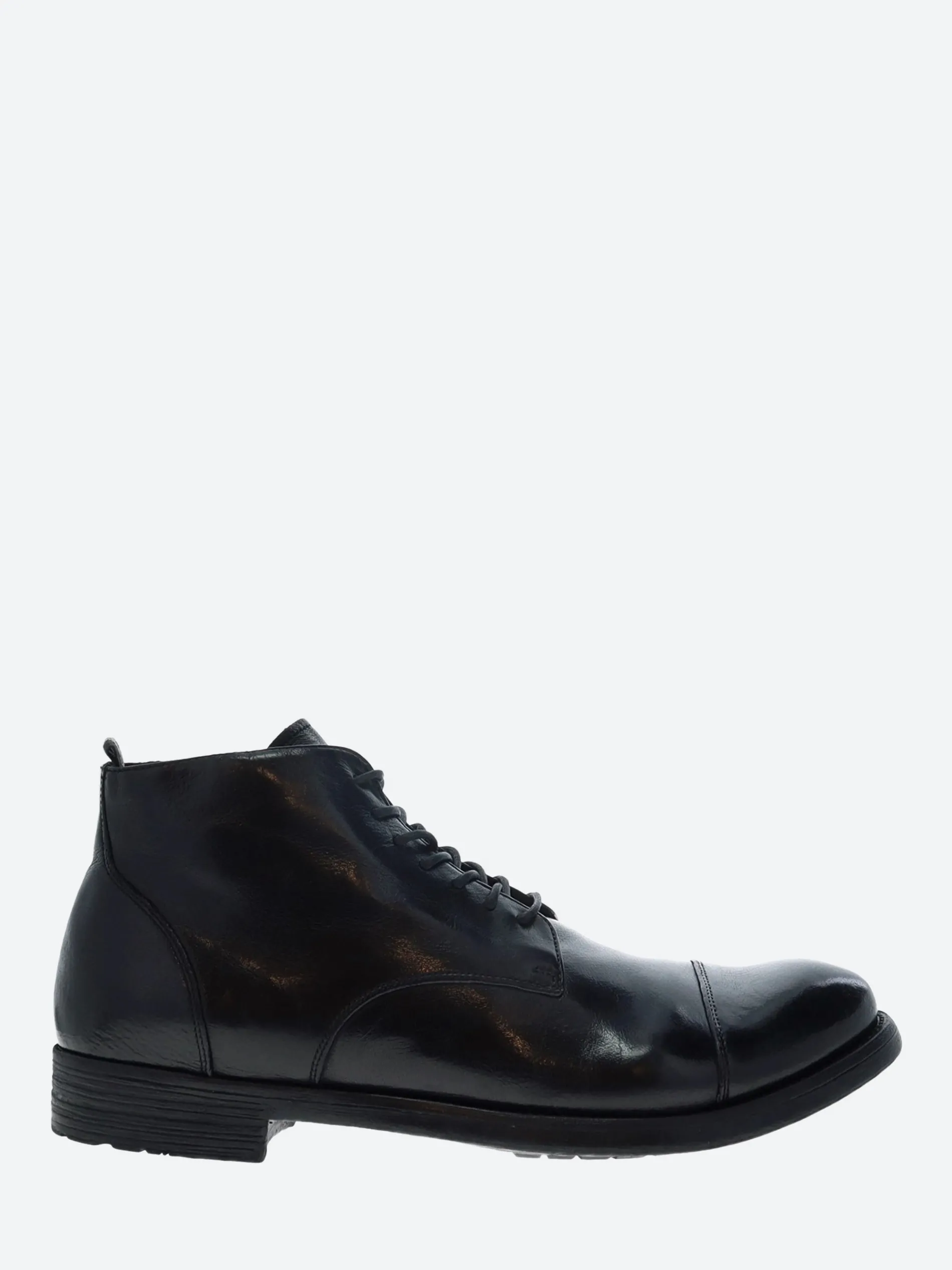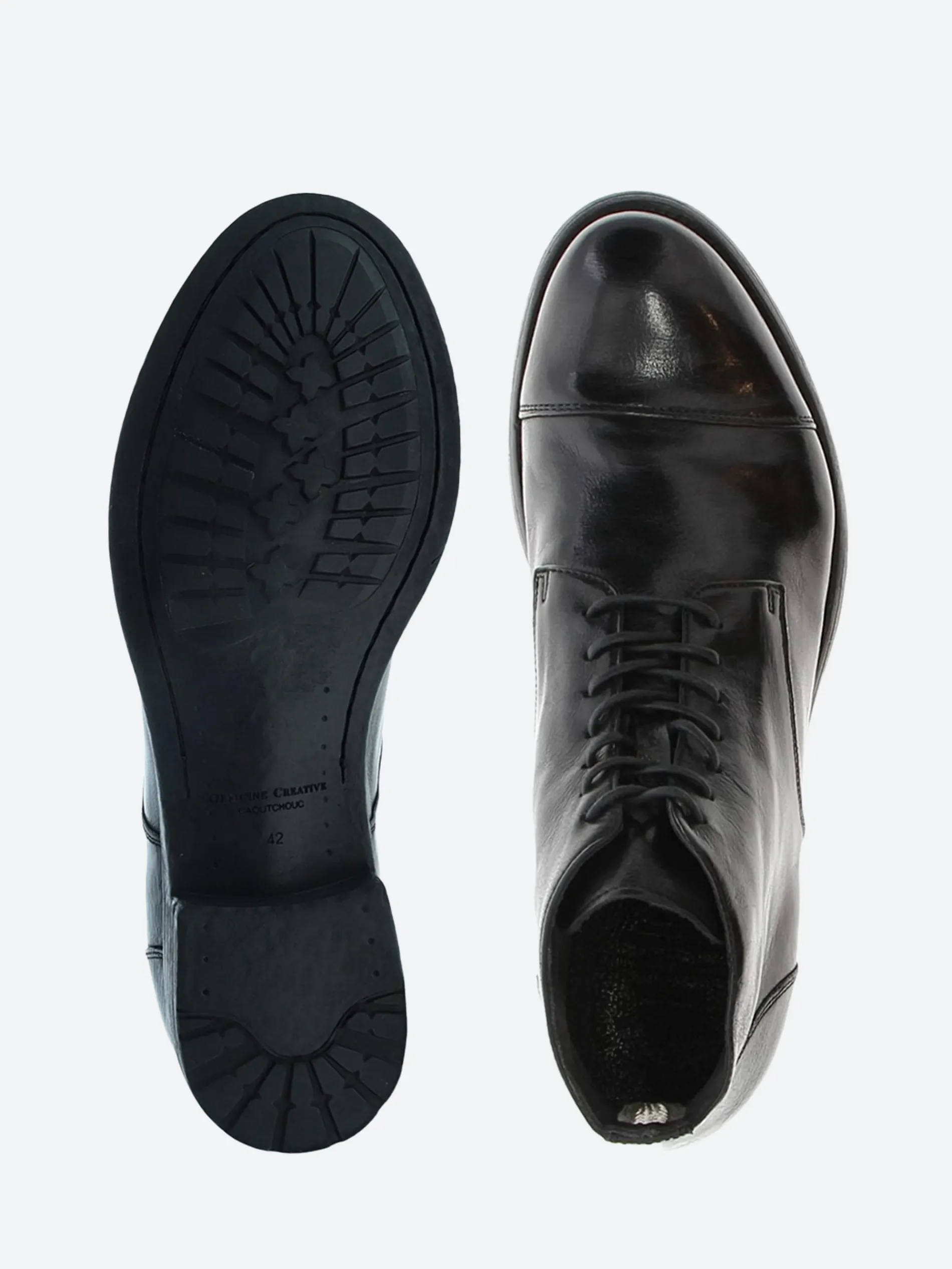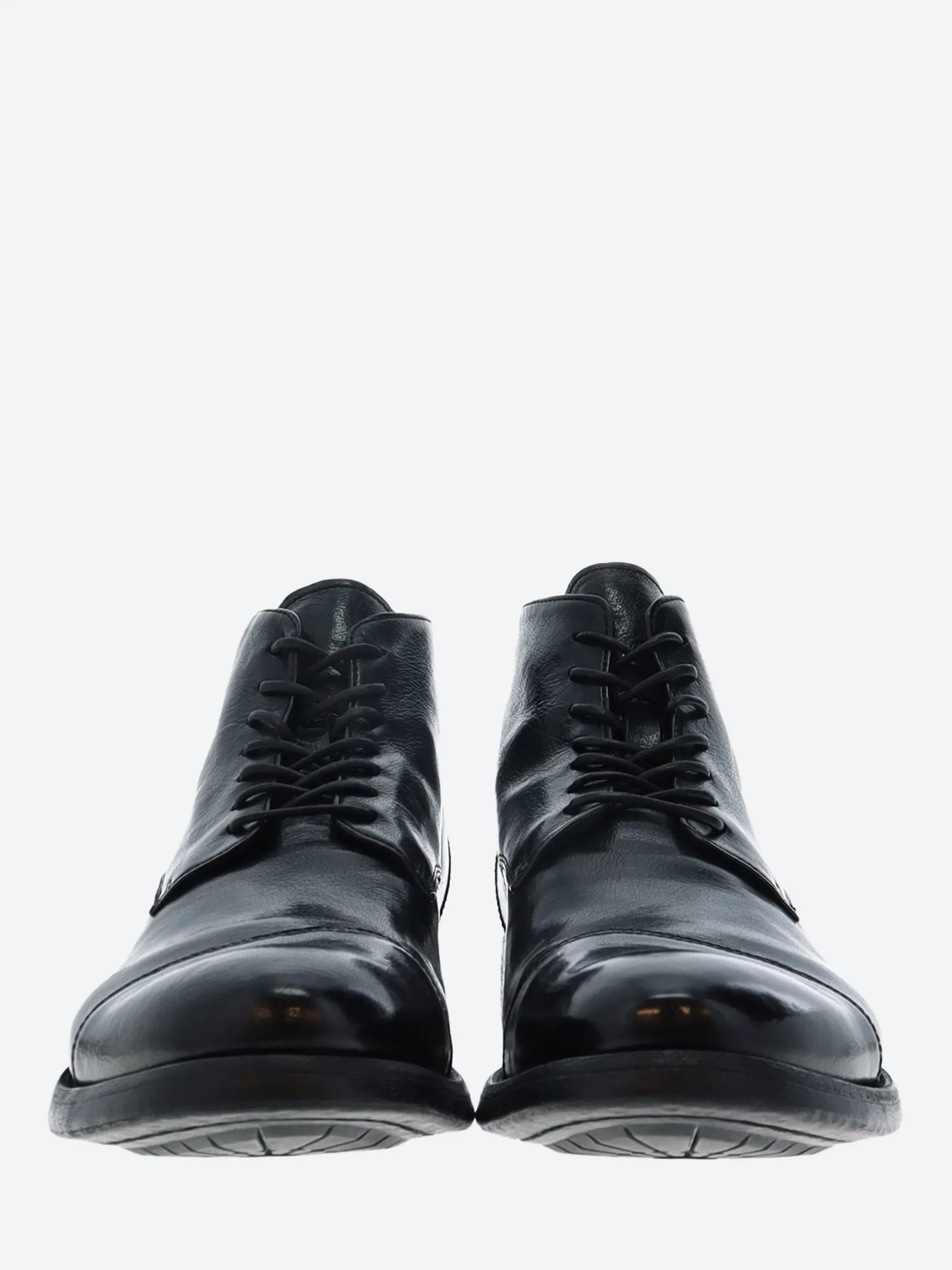 Officine Creative lace-up boots in polished black leather that’s been dip dyed.