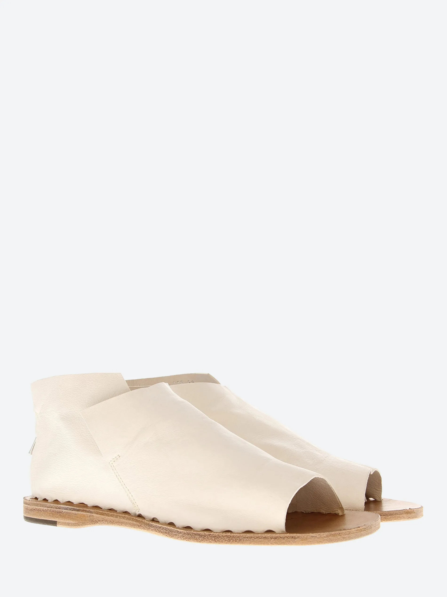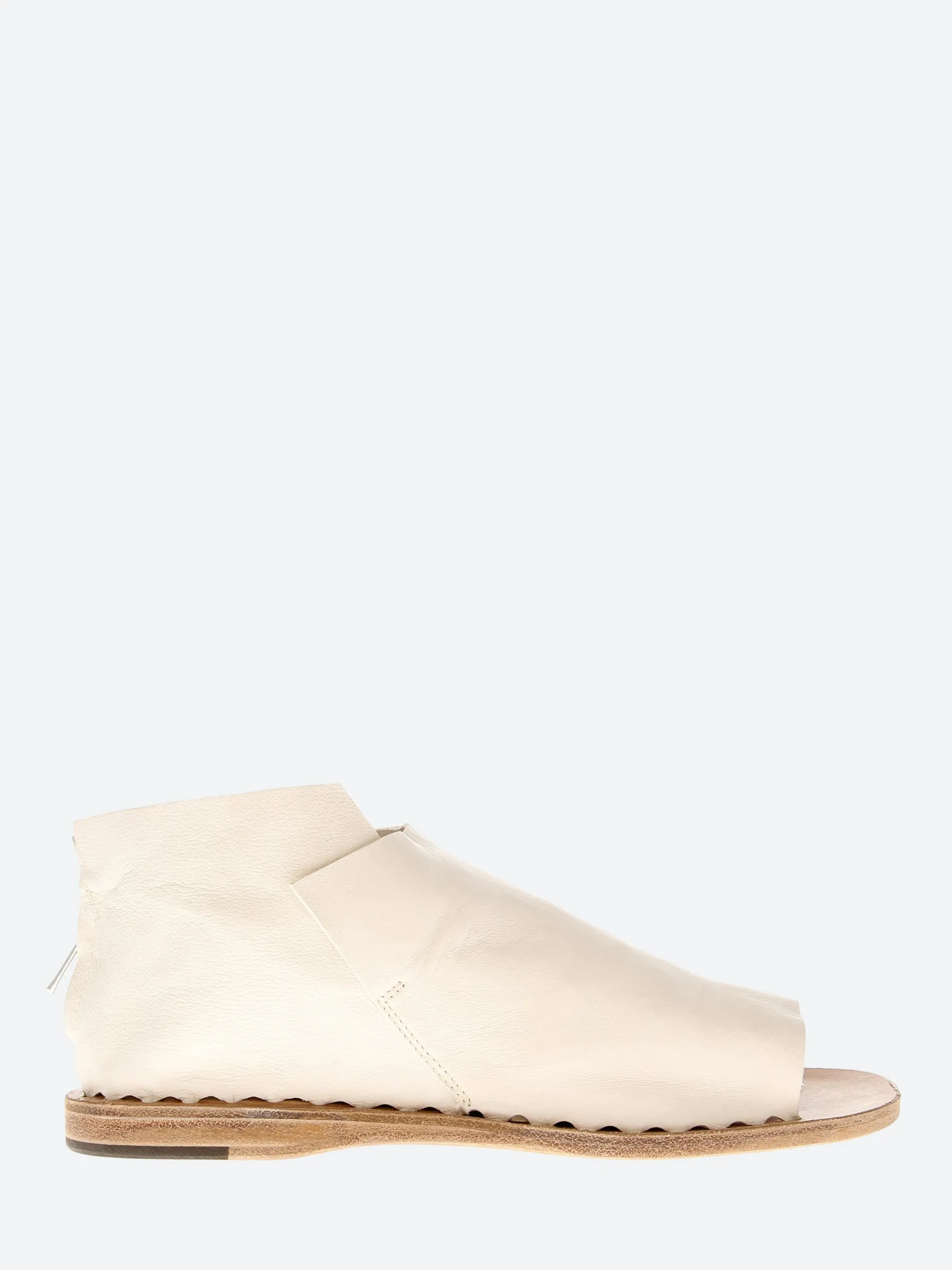 The clean design of the Itaca sandals highlights the impeccable quality of the materials. Handcrafted from soft leather, they feature an asymmetrical wrapped upper with a back zip closure and flat leather sole.
