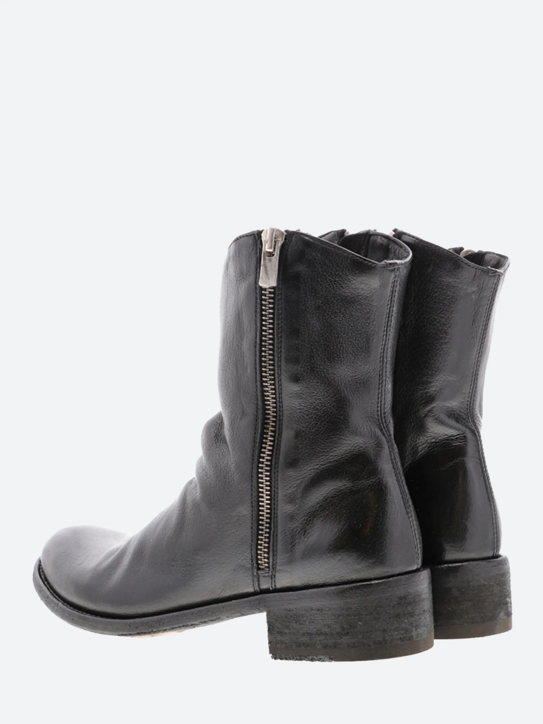 - Silver-tone metal zip closure along both sides