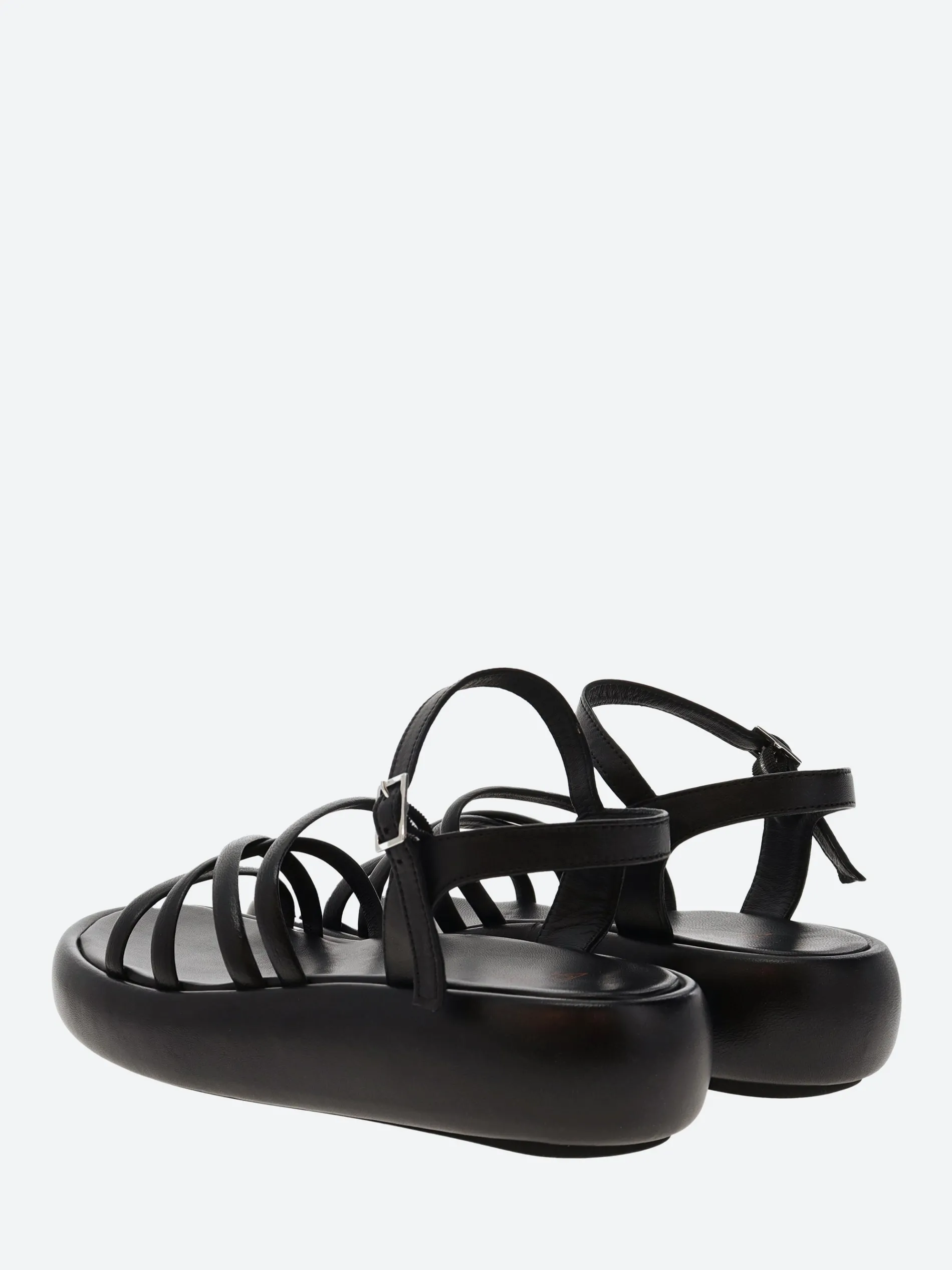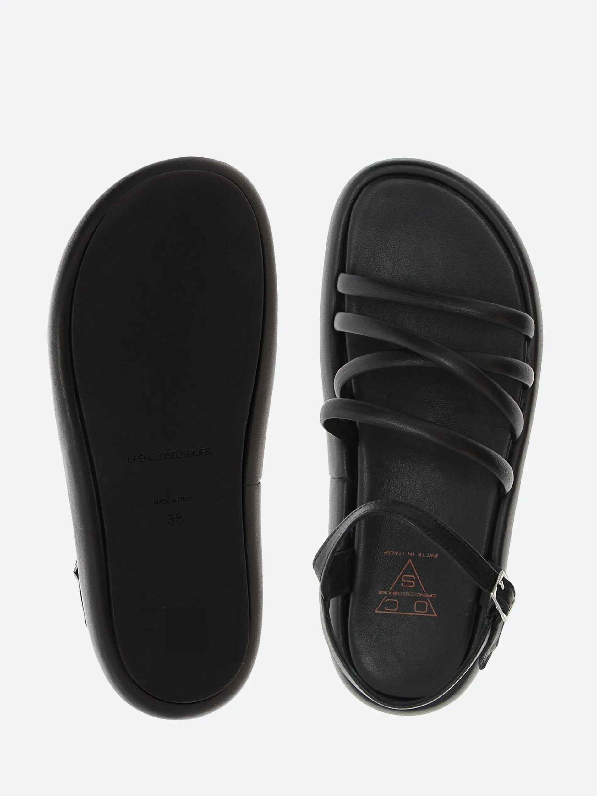 Open Closed Barbara sandals with thin straps at the vamp and a y-strap with buckle closure ensures a secure fit, while the leather wrapped platform adds a statement-making touch.