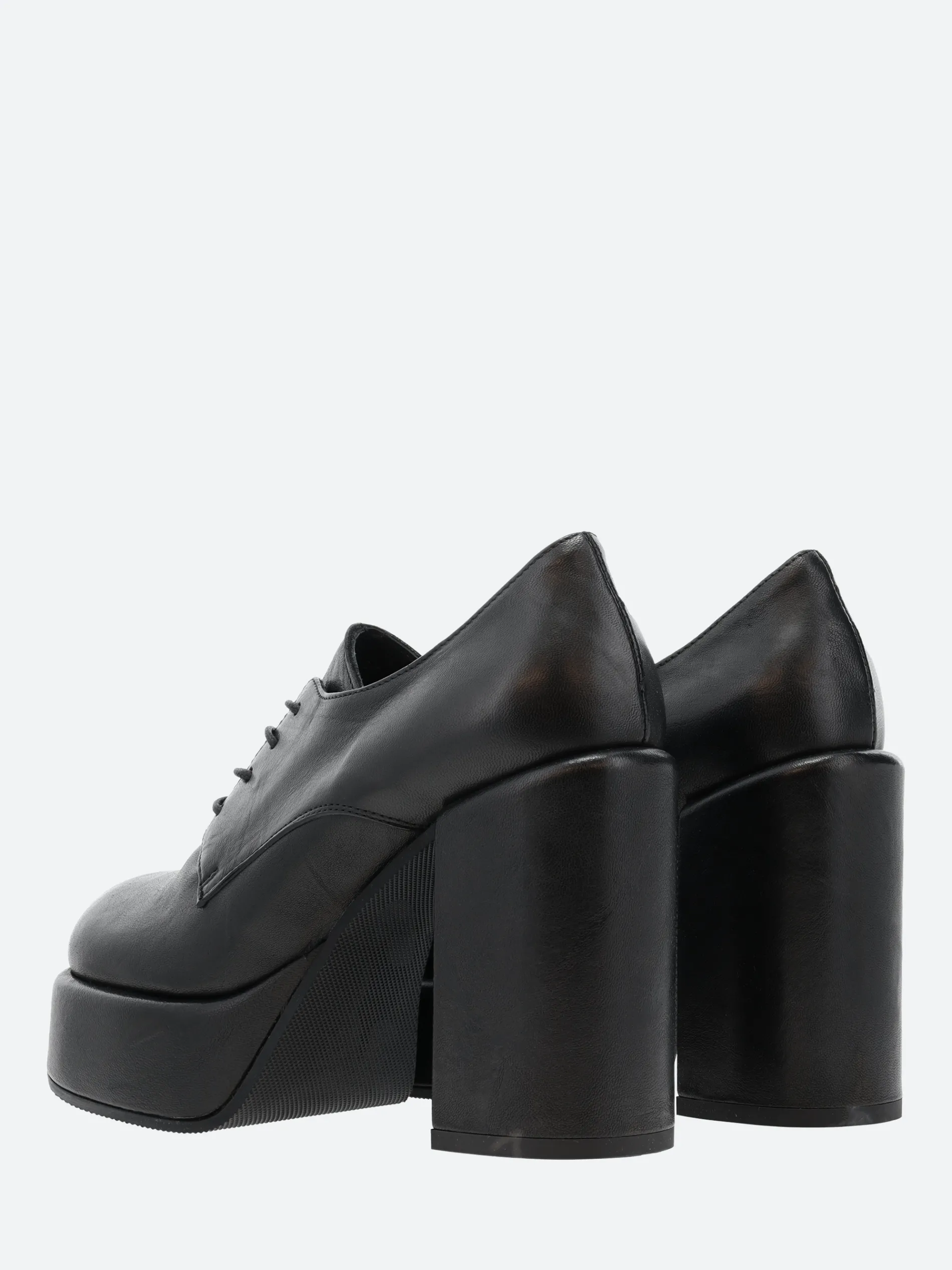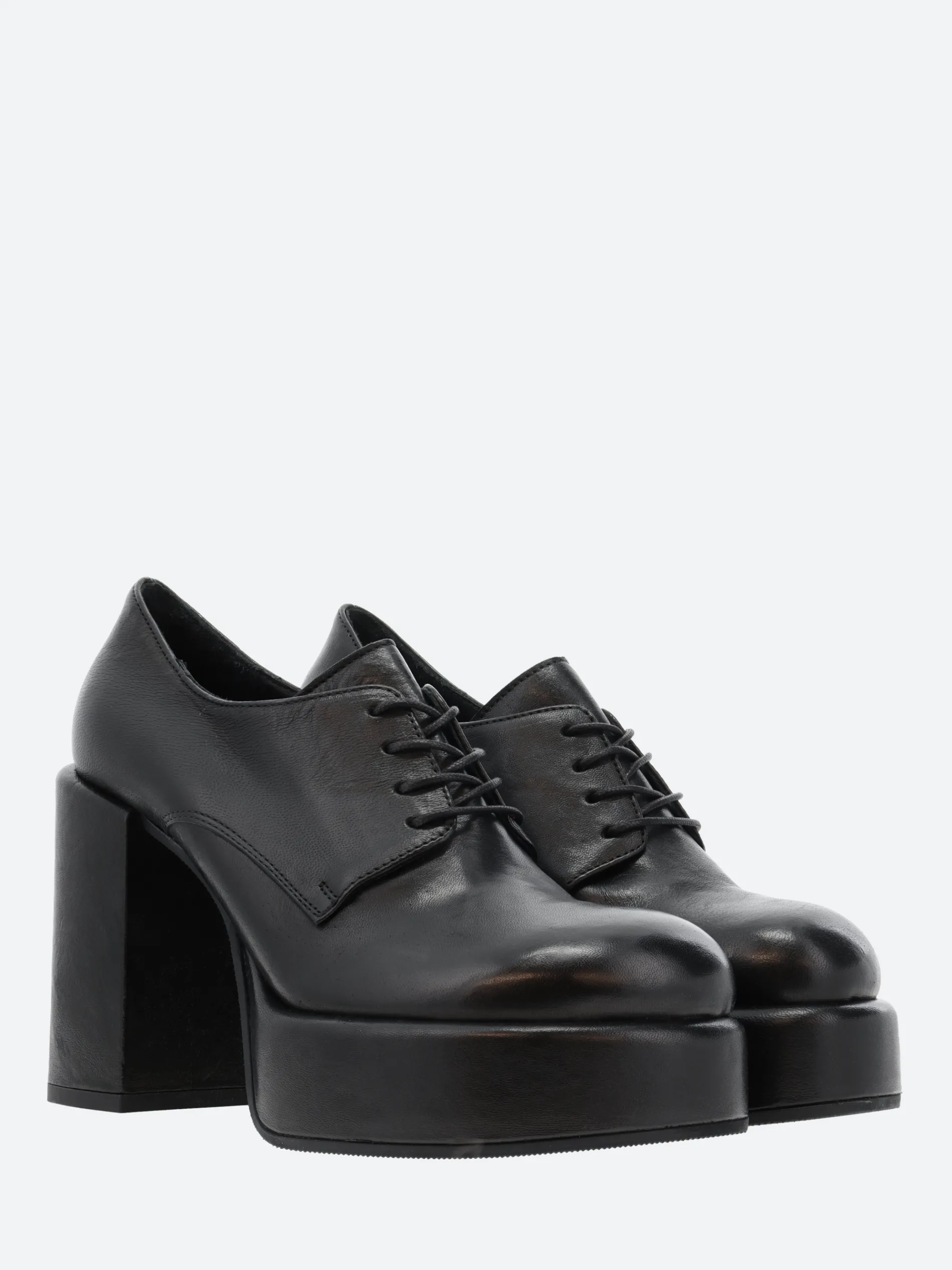 Open Closed Virgi 04 is a modern take on a classic Derby, sitting on a tall block heel and platform sole.