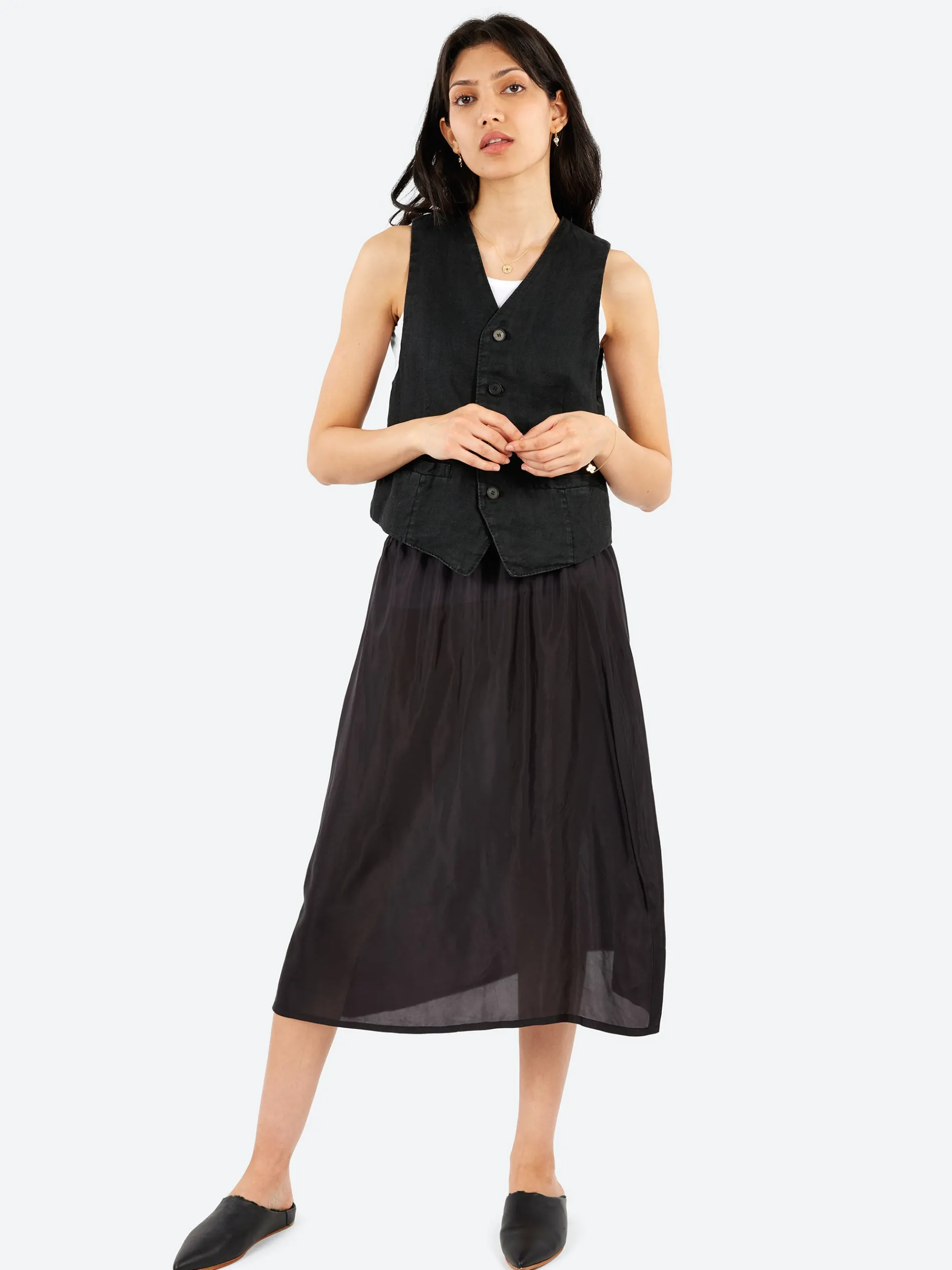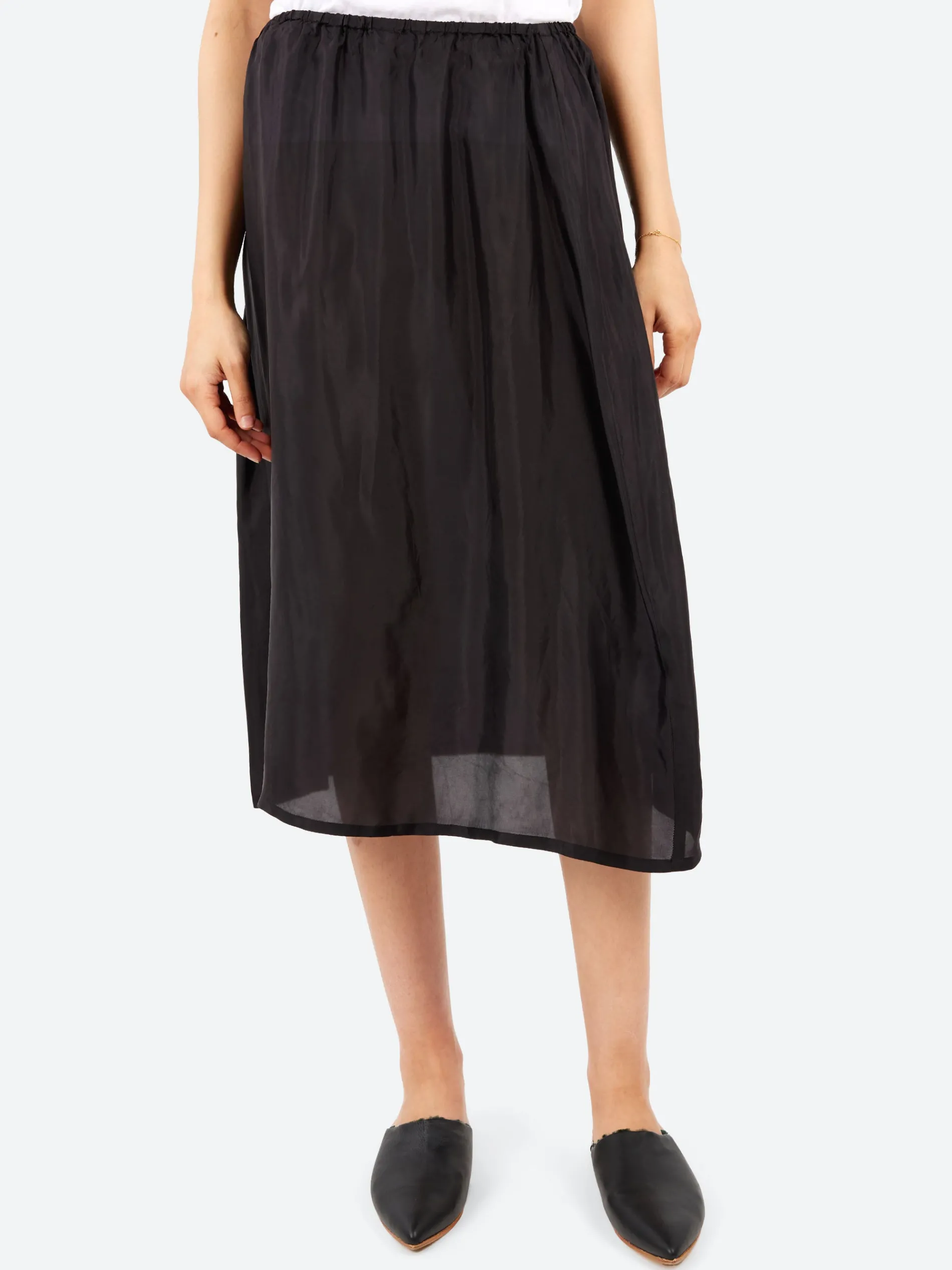 The Bemberg Taffeta Slip Skirt is an elegant midi skirt that combines comfort with sophistication. Crafted from 100% cupro, it offers a luxurious, silky feel against the skin. Featuring an elasticated waist for a comfortable, custom fit, the semi-sheer fabric adds a subtle touch of allure.