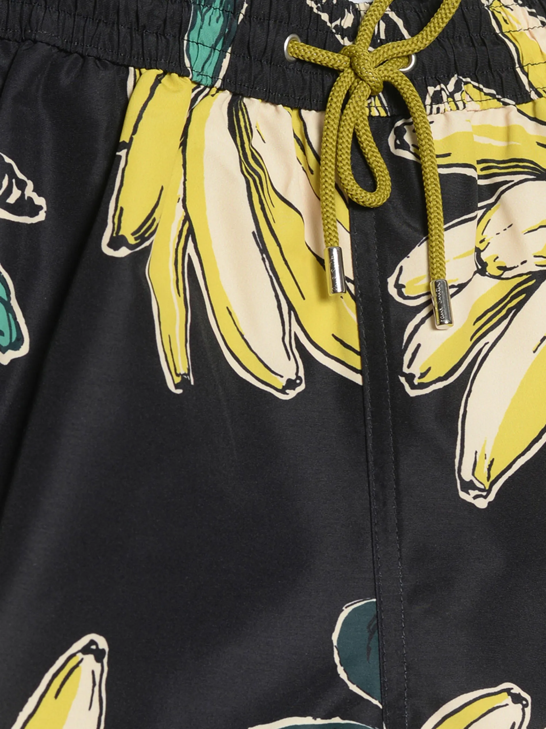 Cut from a recycled polyester-blend, these black swim shorts feature a banana print throughout.