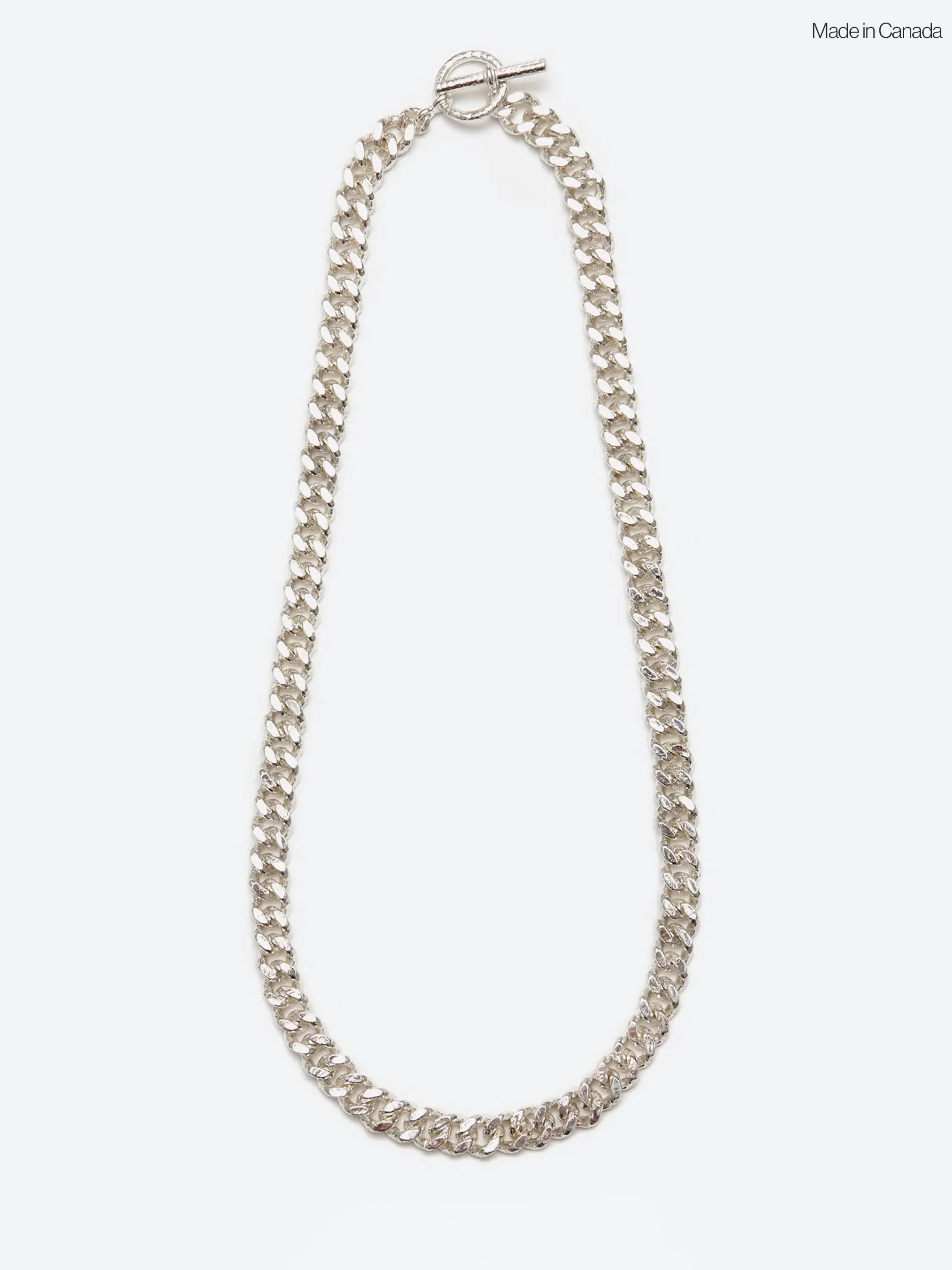 Curb chain necklace handmade in British Columbia, using 925 silver.