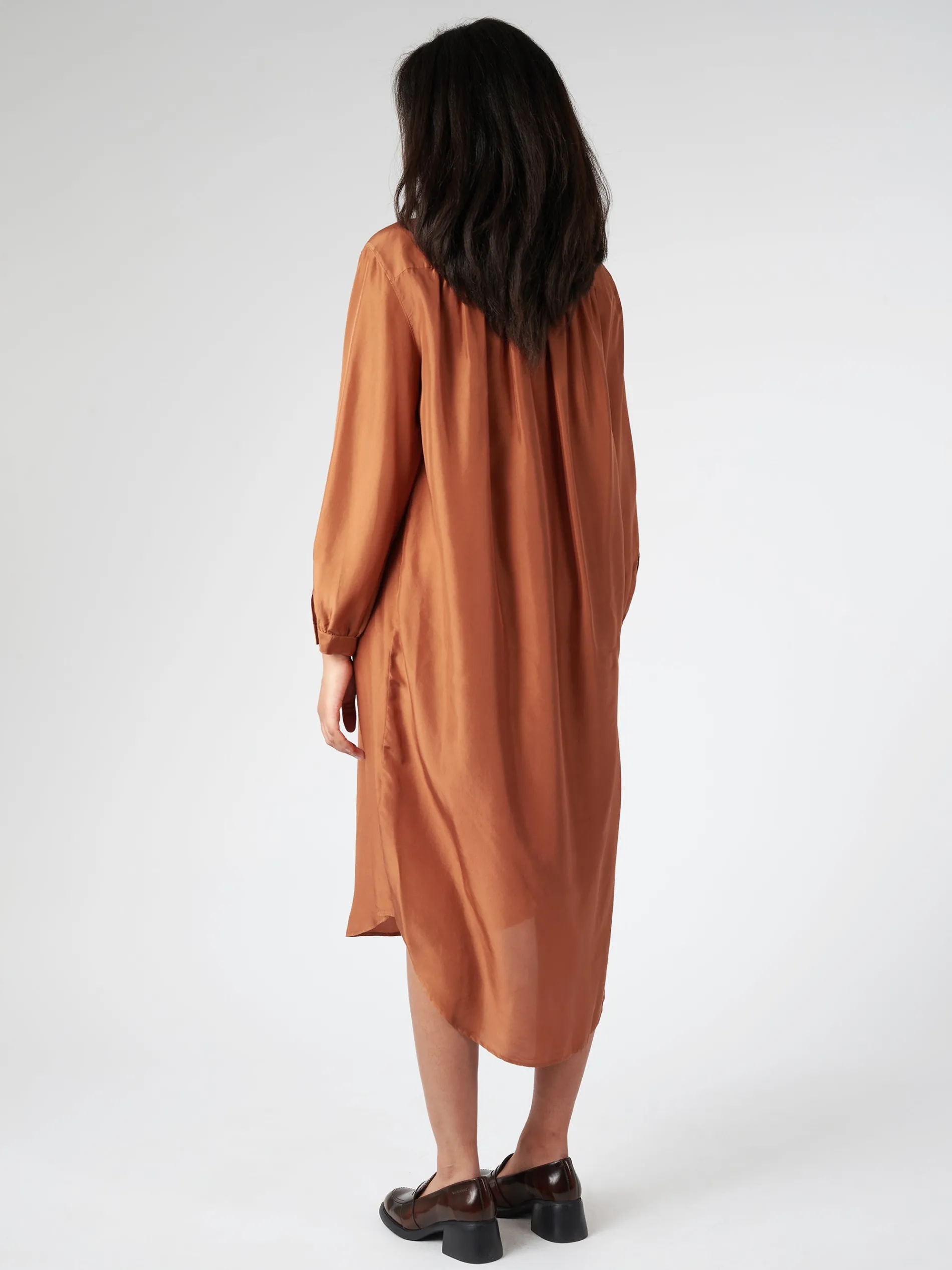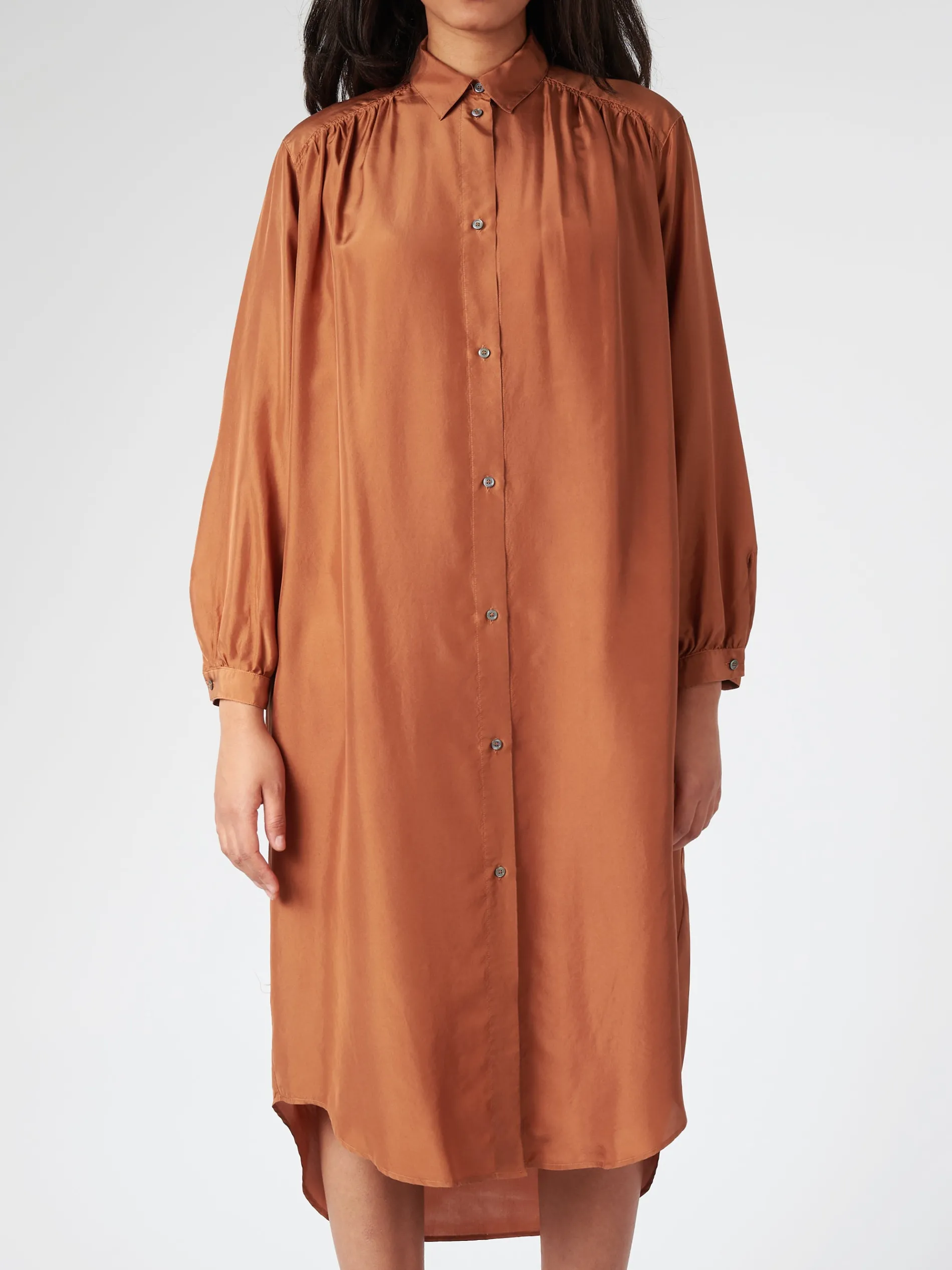 Habutai silk garment dyed silk shirt dress with a classic collar.