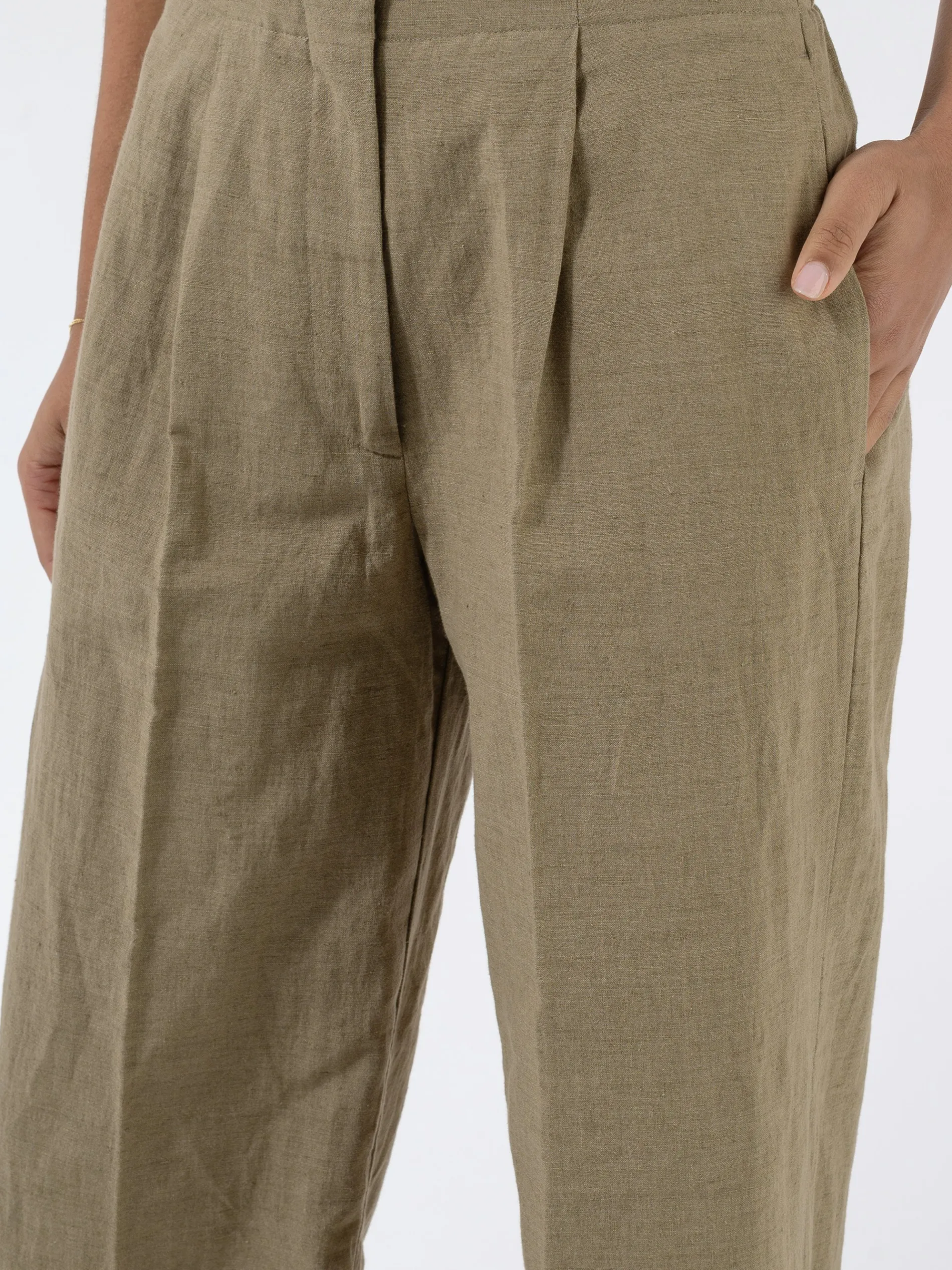 Pomandere trousers in a faded, medium-weight linen and cotton with a refined slub texture.
