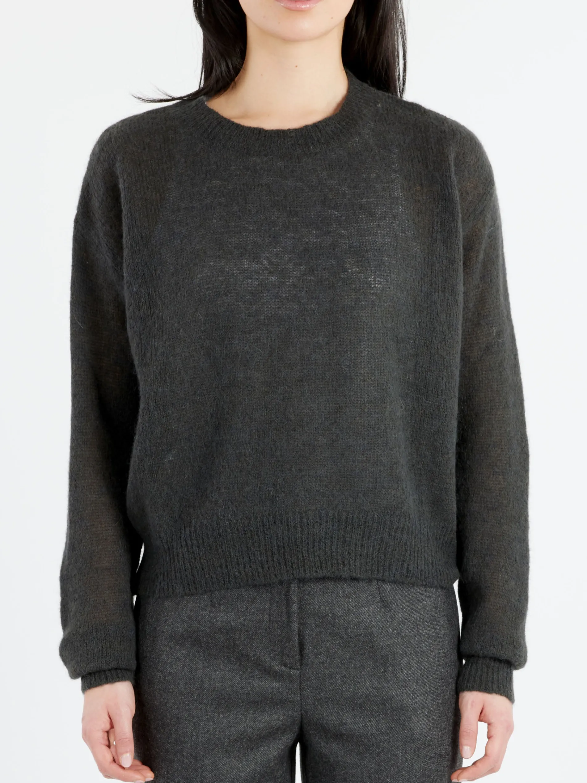 The soft texture of alpaca wool complements the essential style of the crew neck sweater. The dropped shoulder enhances the relaxed and comfortable look of the garment.