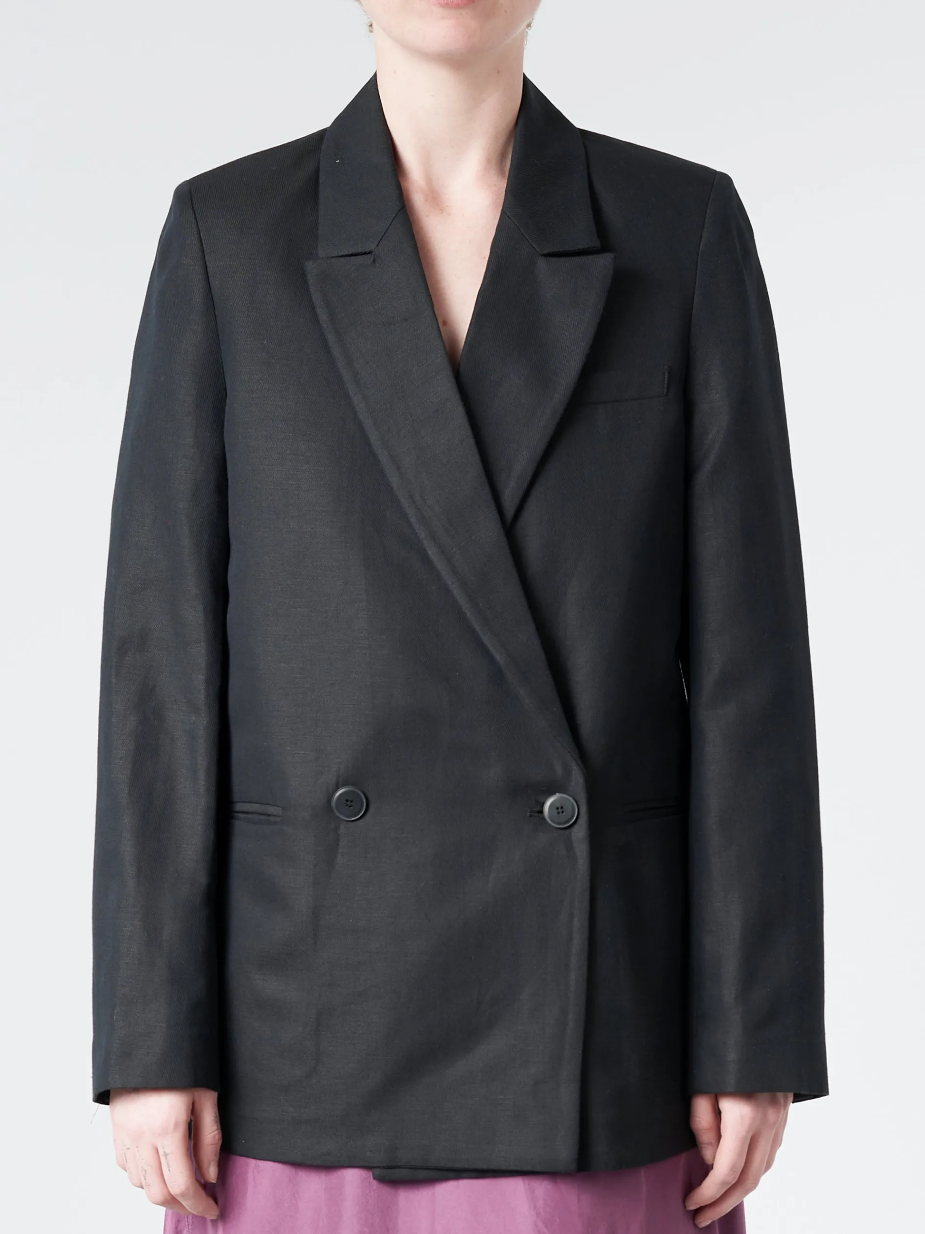 Unlined jacket in Japanese cotton and linen. Designed with a slightly looser fit with classic notch lapels.