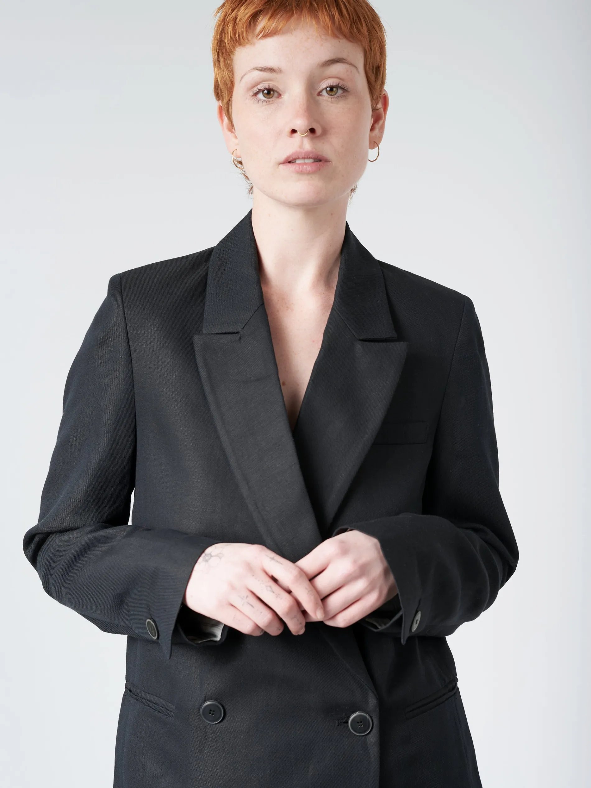 - Double-breasted closure