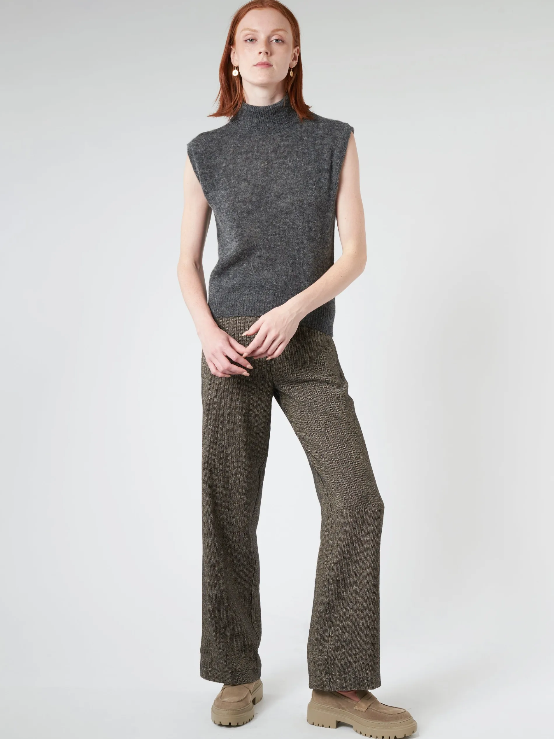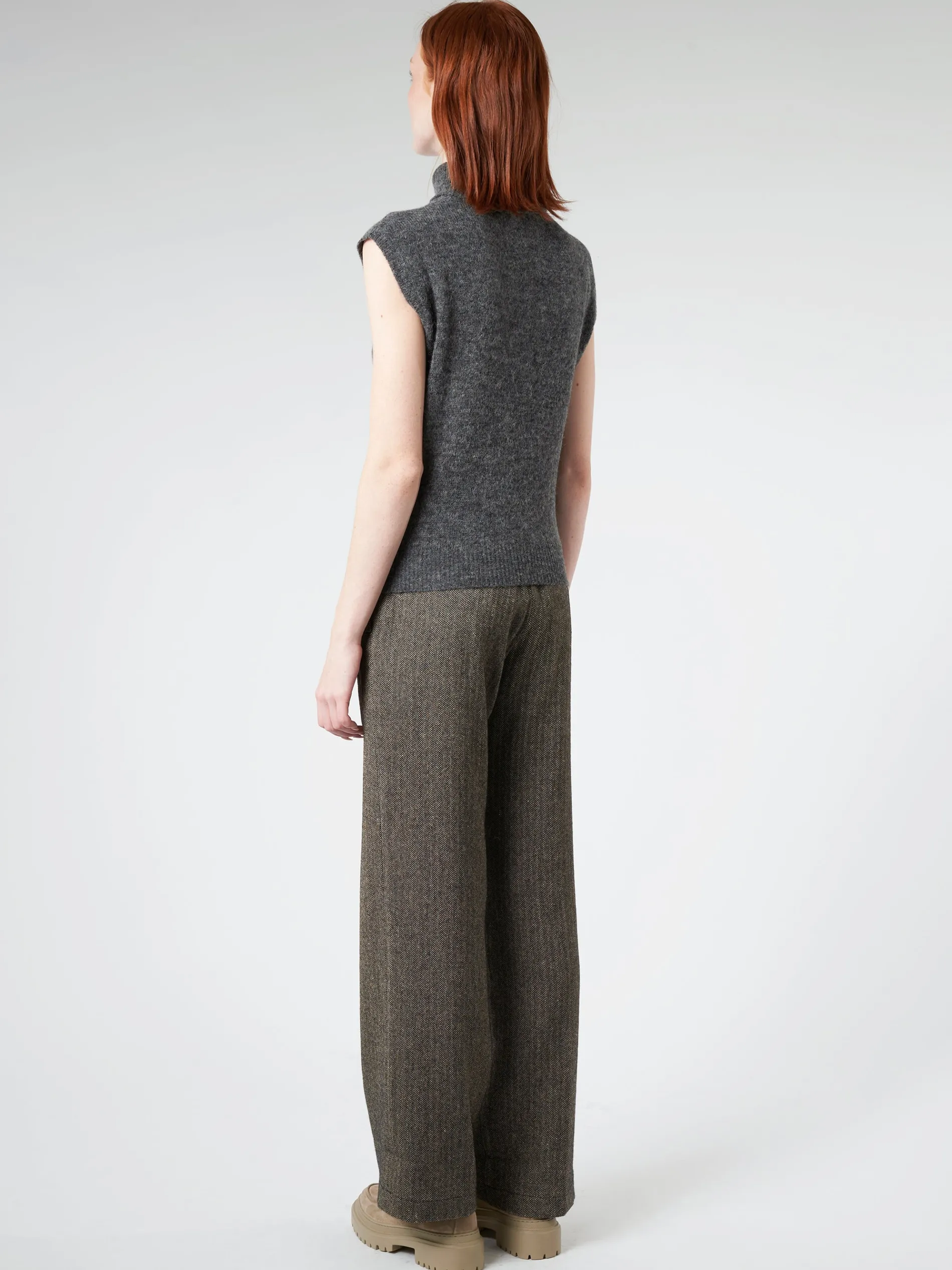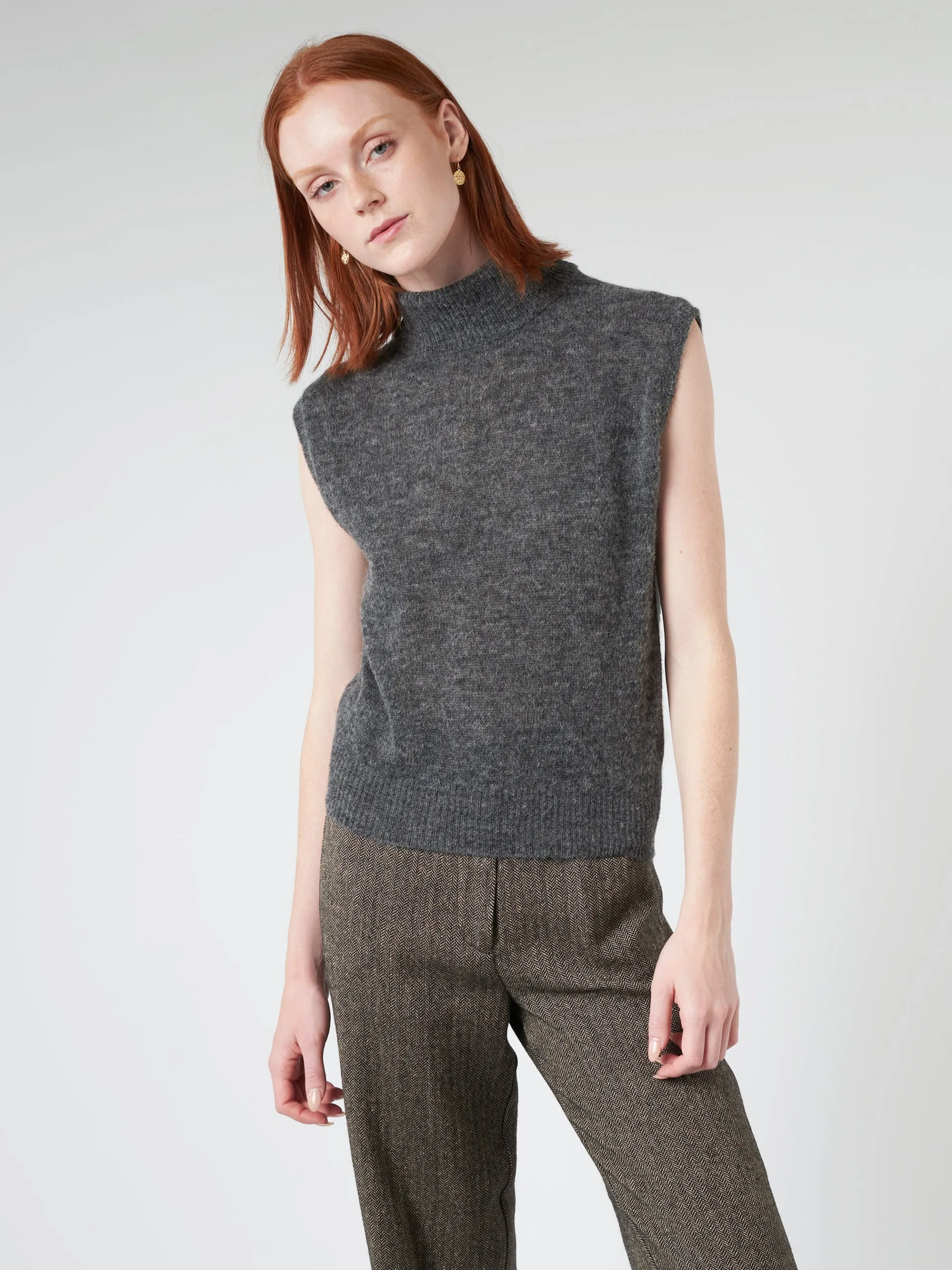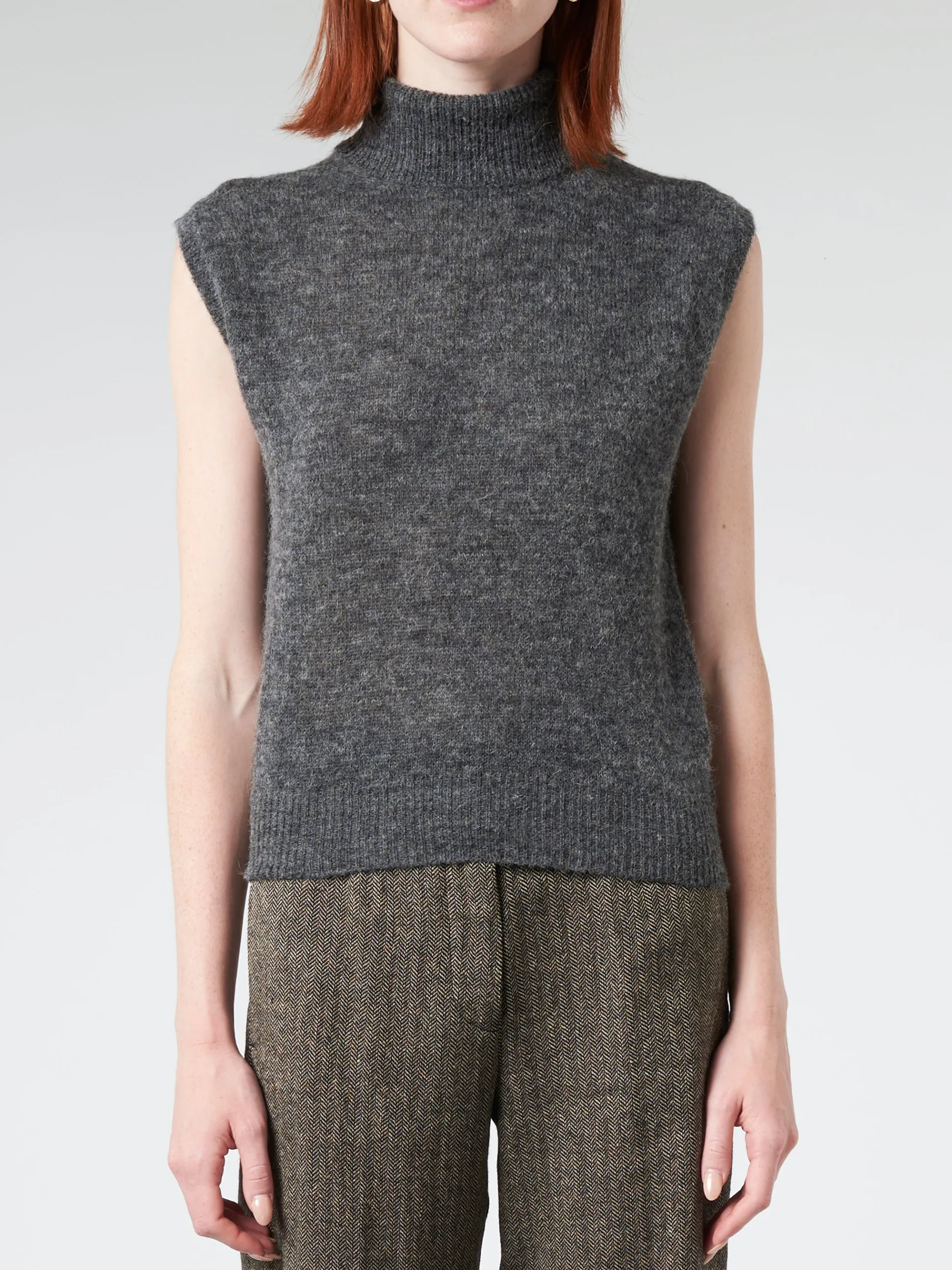 Pomandere stockinette stitch vest with high collar in alpaca and super soft merino wool.