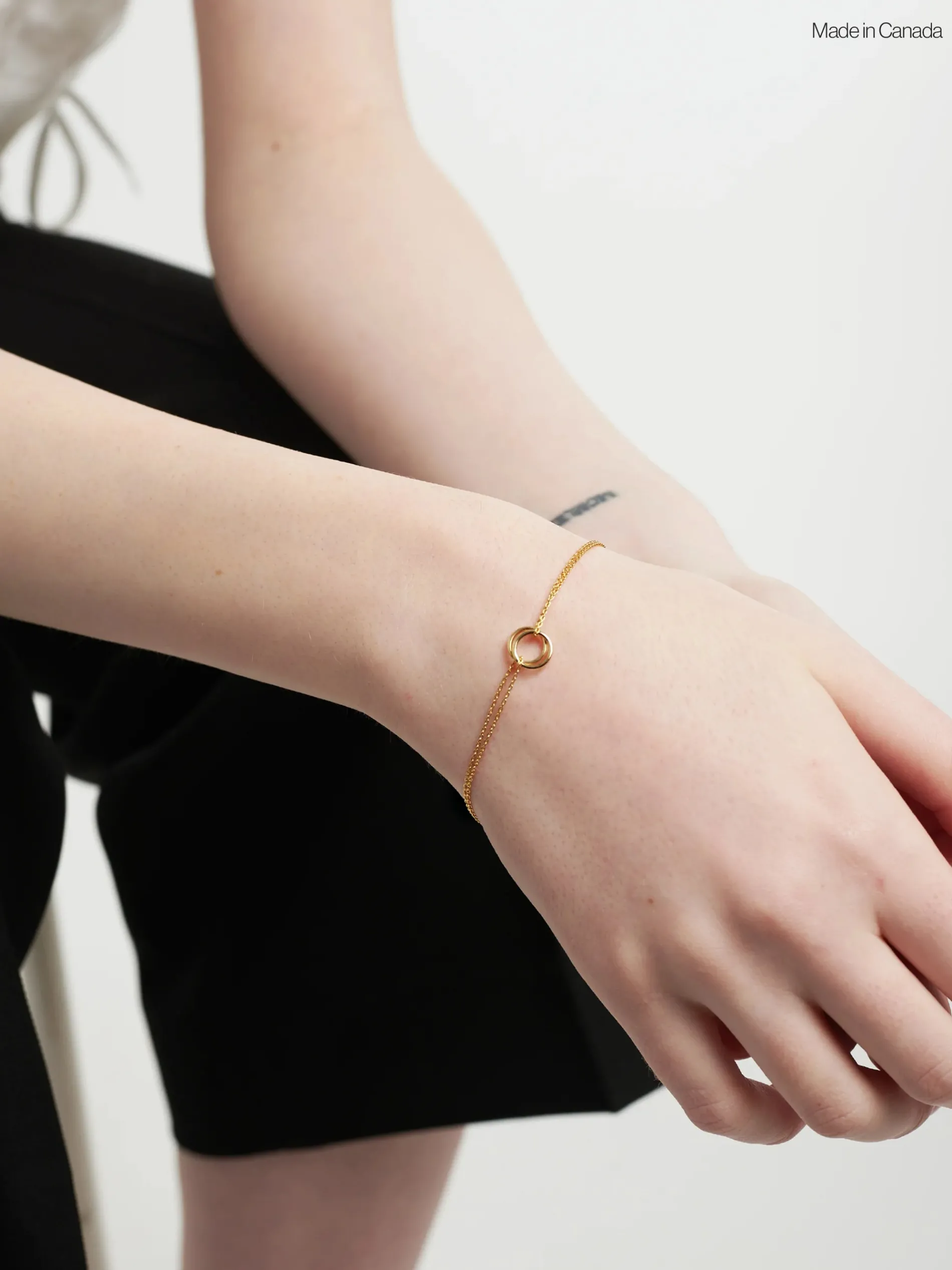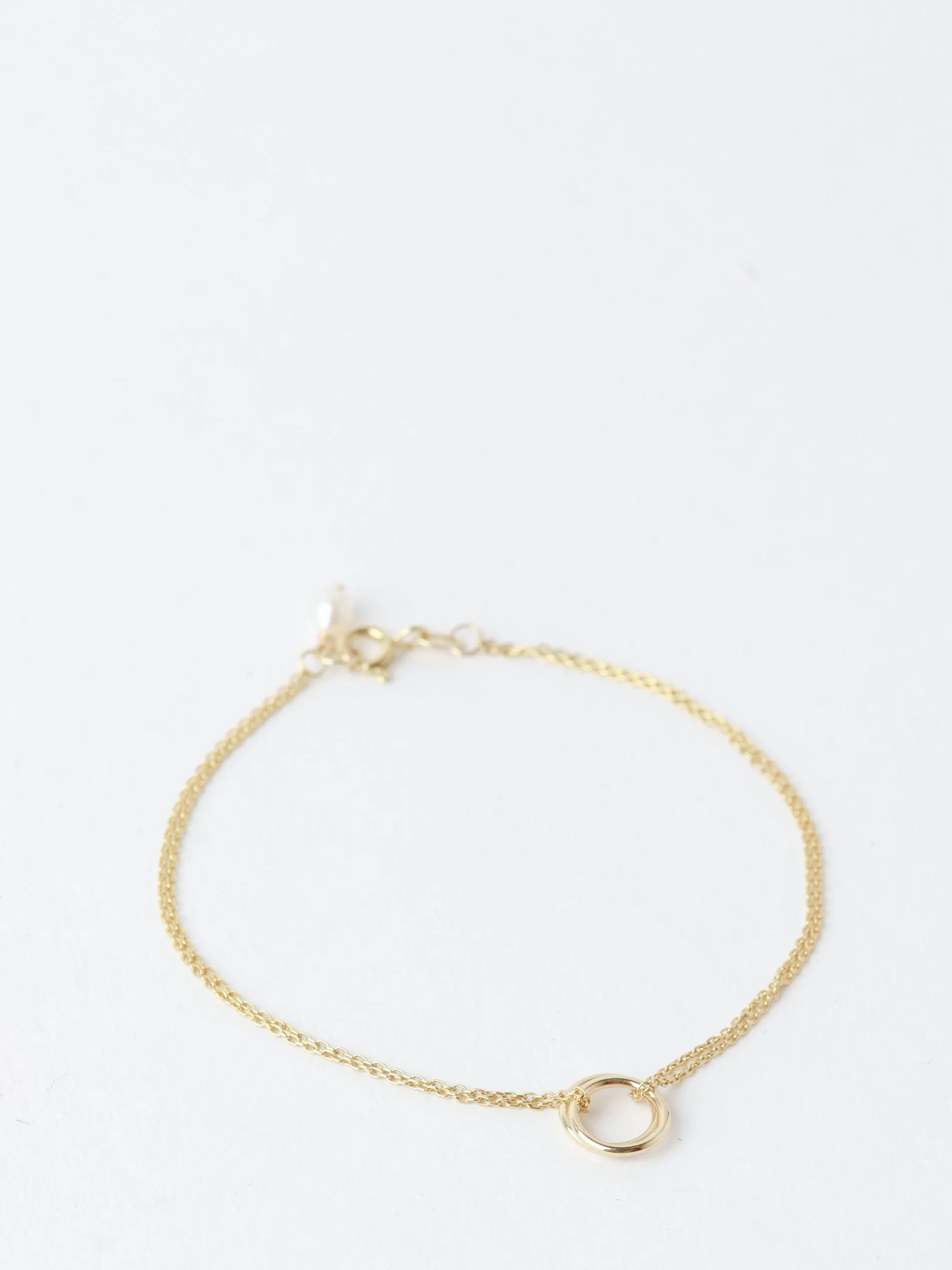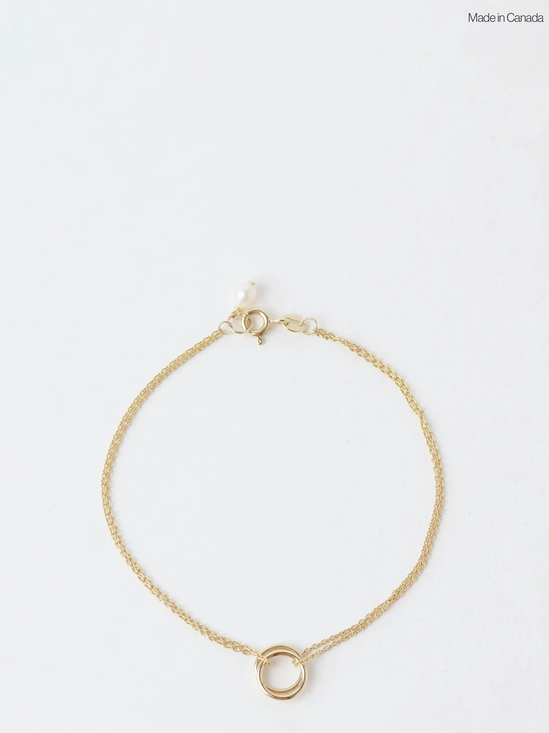 Good things come in pairs. Two 14k gold rings bound together by two delicate gold chains.