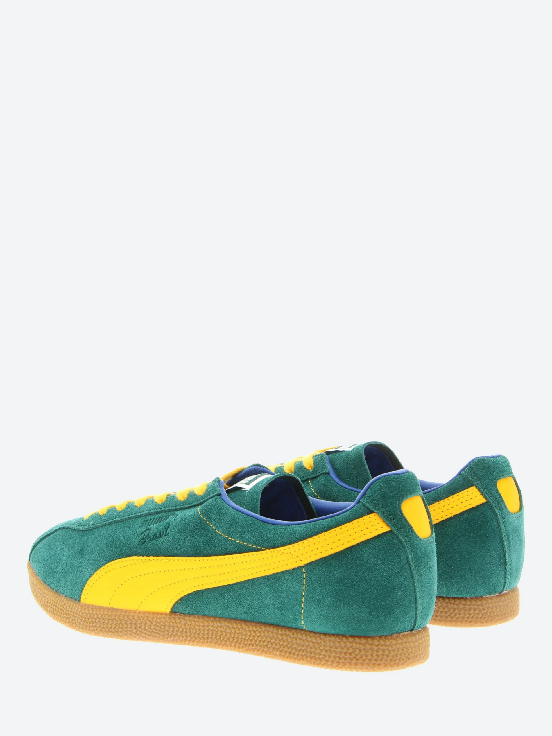 The Puma Brasil sneakers, dressed in yellow, green, and blue, are a tribute to Brazil. Made from luxurious suede, they feature a contrasting gum sole and a leather Formstrip logo on each side, creating a timeless, vintage-inspired look.