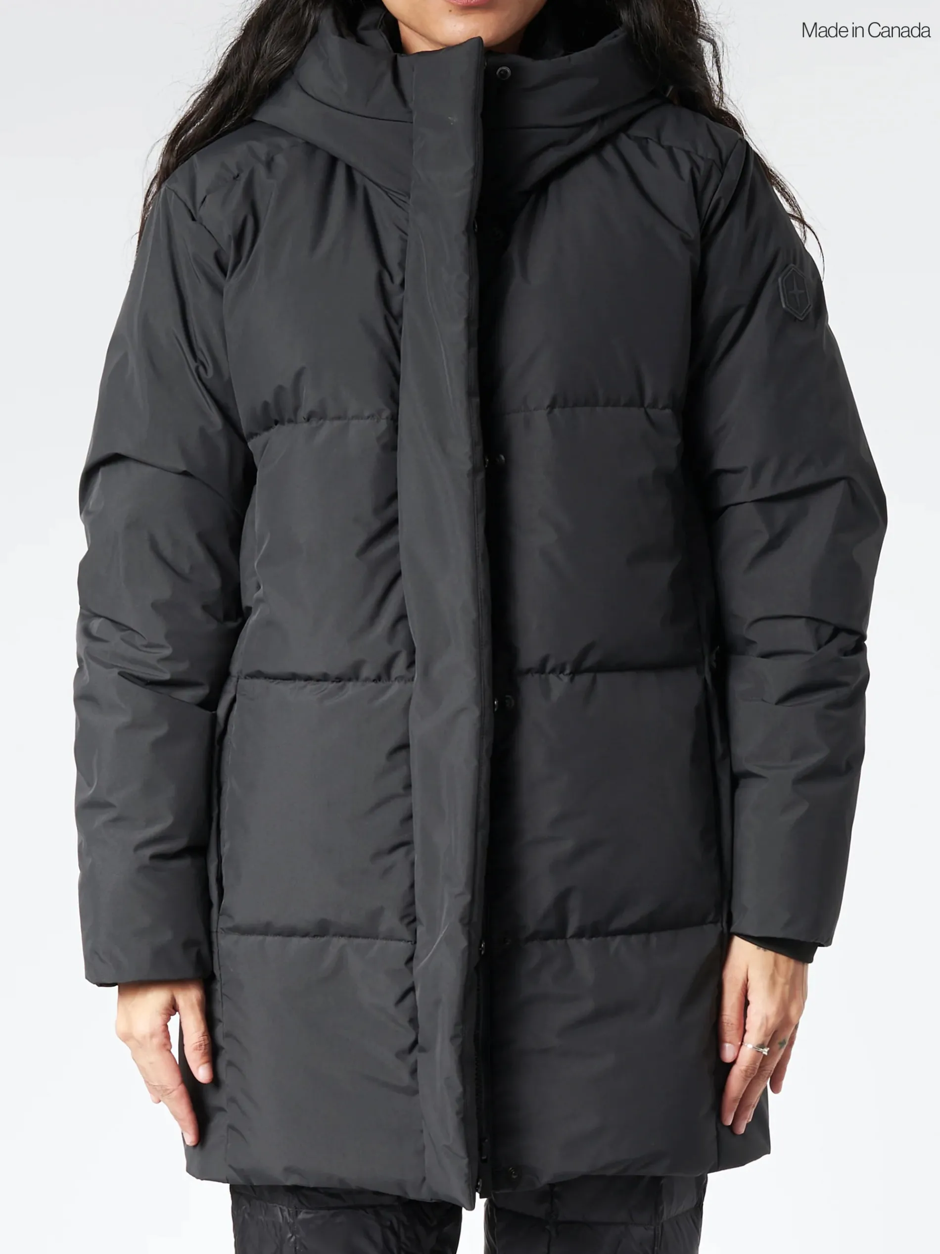 June is a midweight jacket with a modern look. Made from breathable, waterproof super matte fabric and insulated with ethically sourced down, this style is designed to deliver warmth in moderately cold climates.