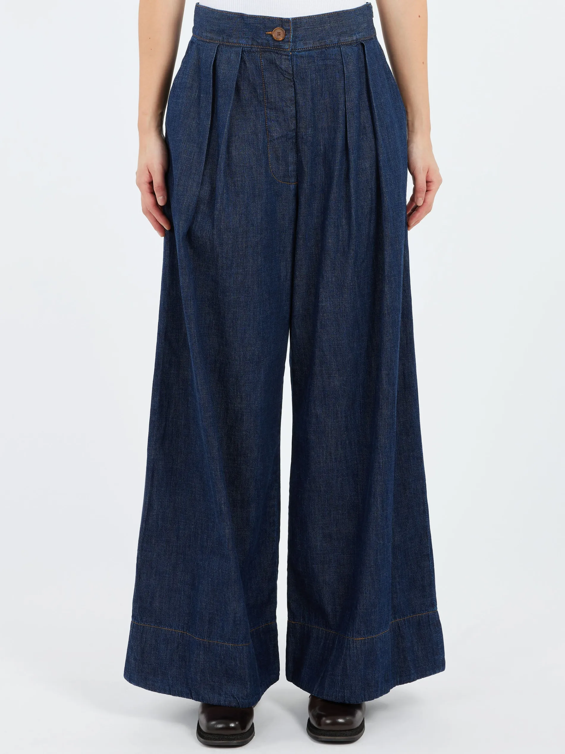 A Rachel Comey go-to, the Coxsone pant is an easy, pleated, high-waisted trouser with a wide leg, cut from Vista Denim.