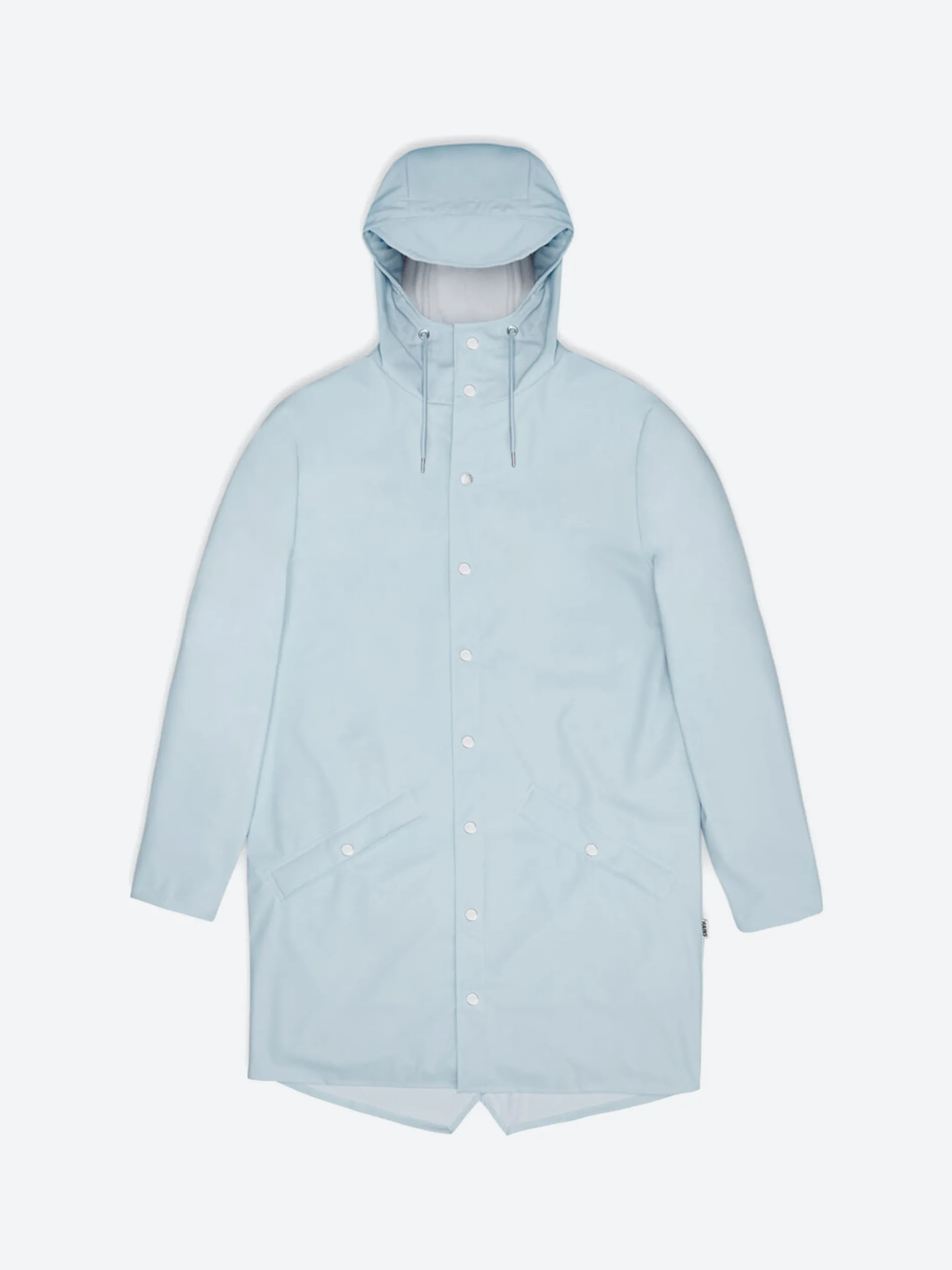 Rains’ Long Jacket is made from a water-resistant lightweight fabric with a matte finish. This unisex rain jacket is designed in a casual raincoat silhouette with an elegant appearance.