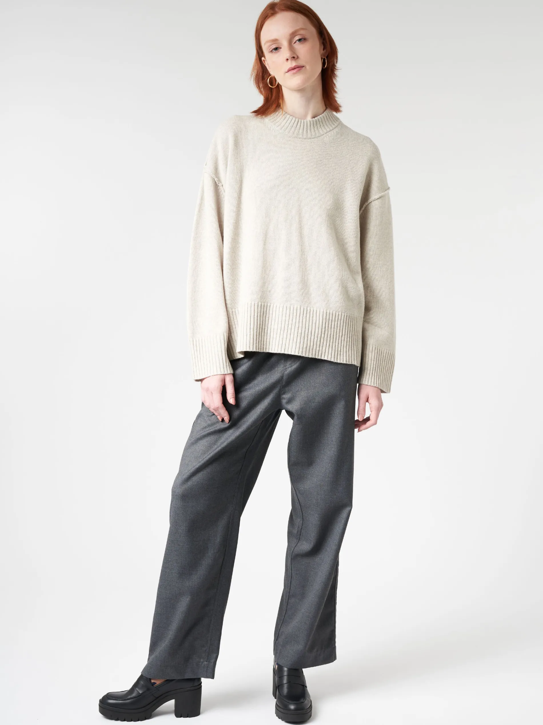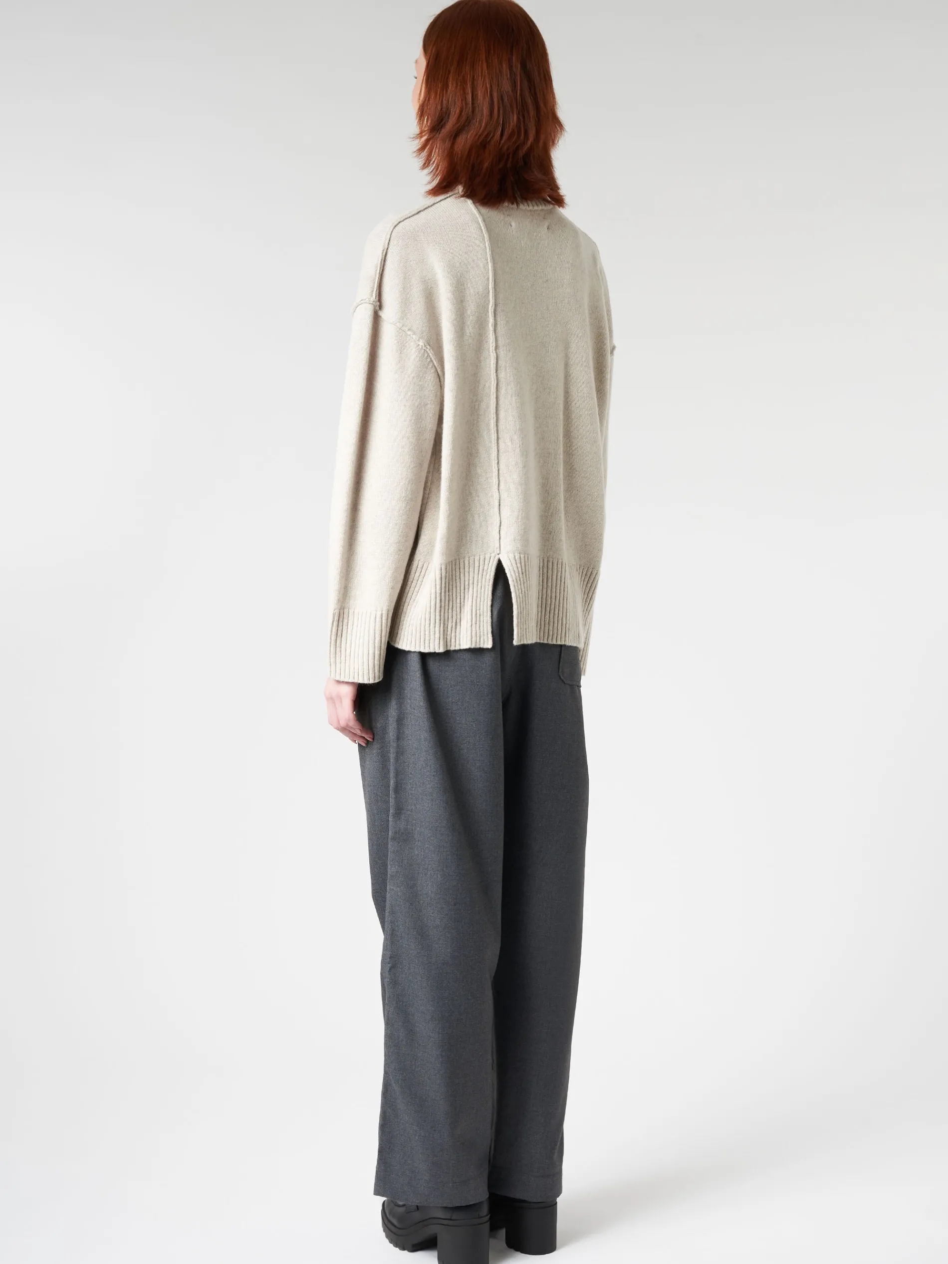 Adnym Atelier high neck stockinette knit with a cut and sewn seam at back featuring slits at sides.