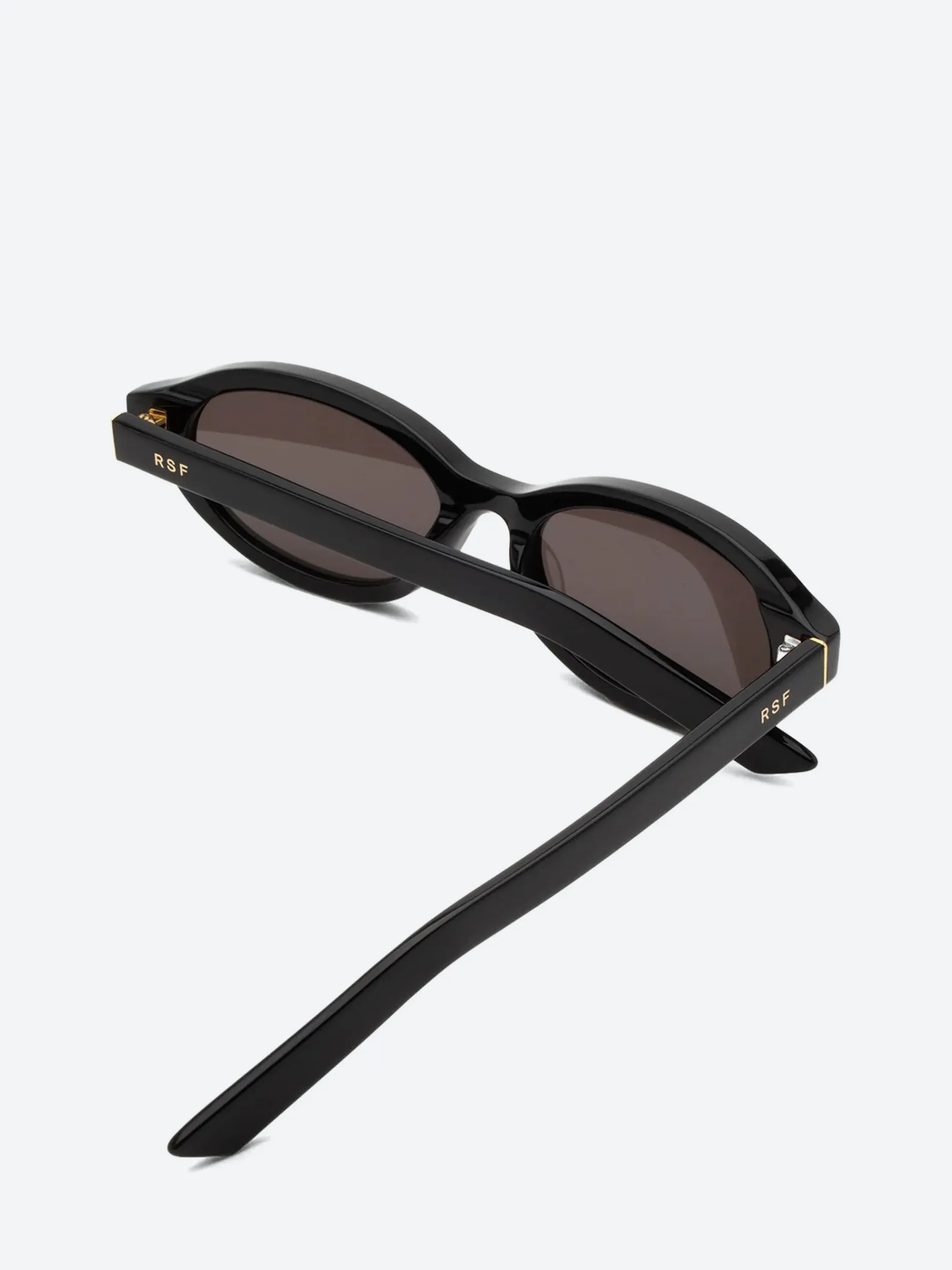 This model features a sleek, minimalist design crafted from high-grade Italian acetate in a timeless black finish. It is equipped with Zeiss lenses in base 2, offering superior optical clarity and 100% UV protection. Each pair is handmade in Italy, ensuring premium quality and attention to detail.