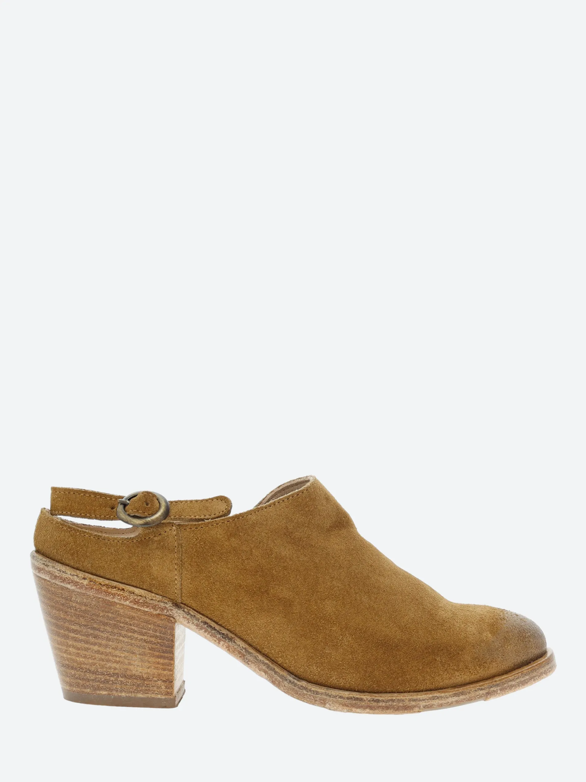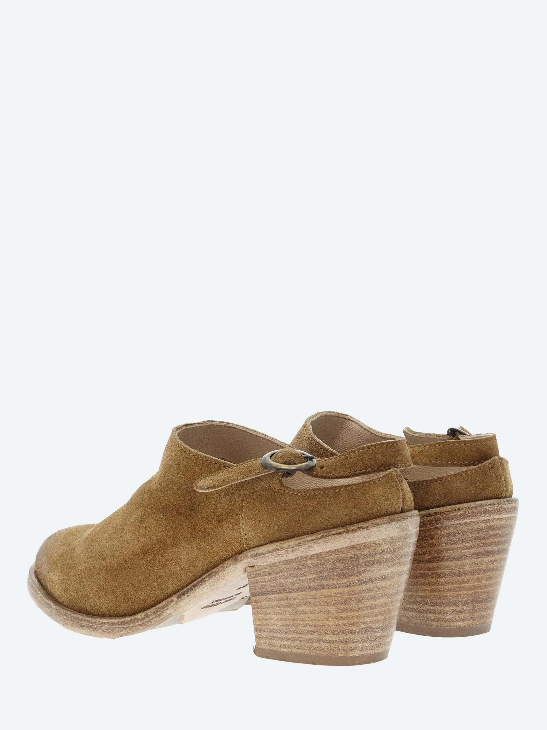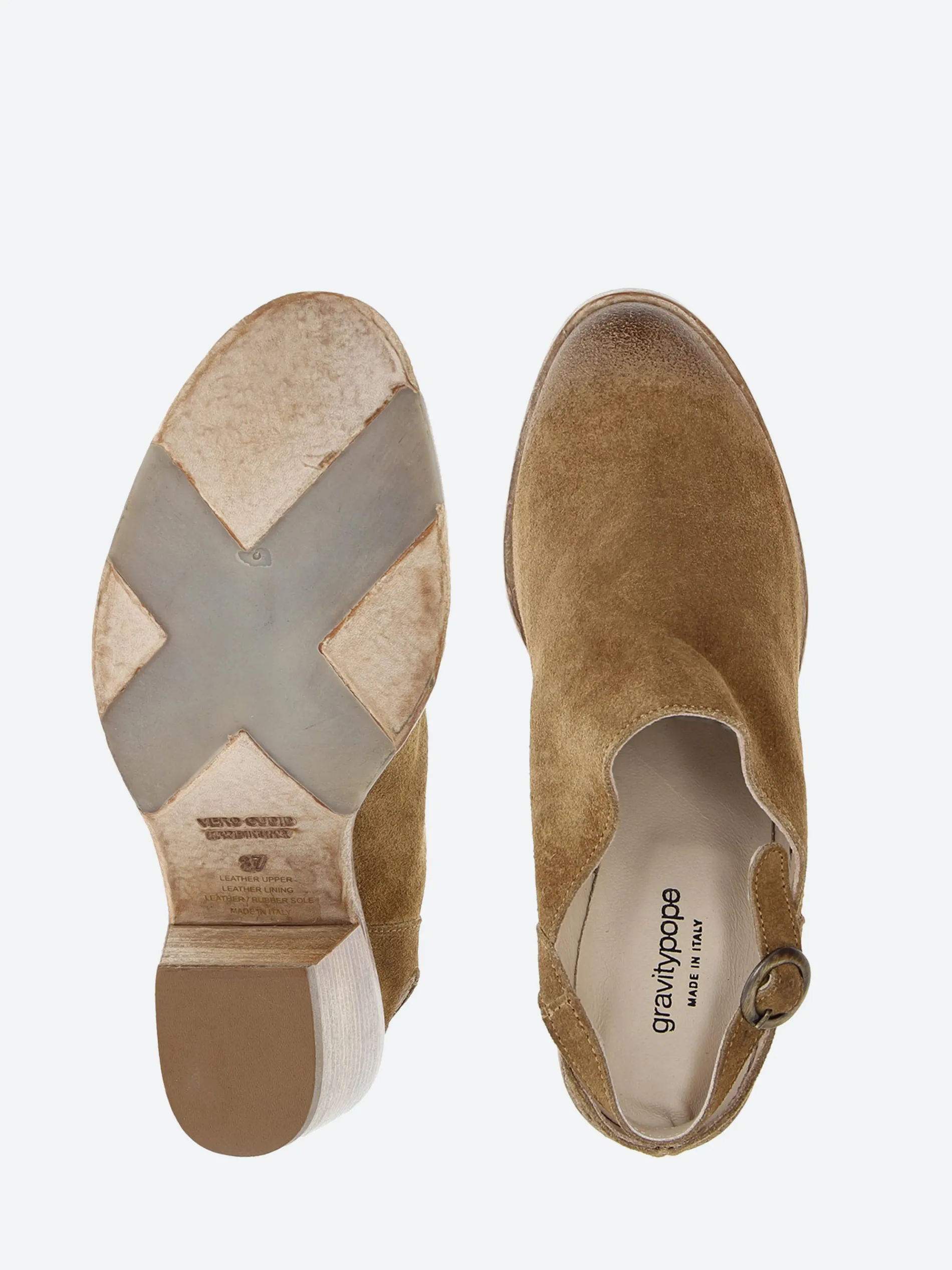 gravitypope minimalist mule with an adjustable heel strap and a Western-inspired toe. Crafted of buttery soft Italian suede.