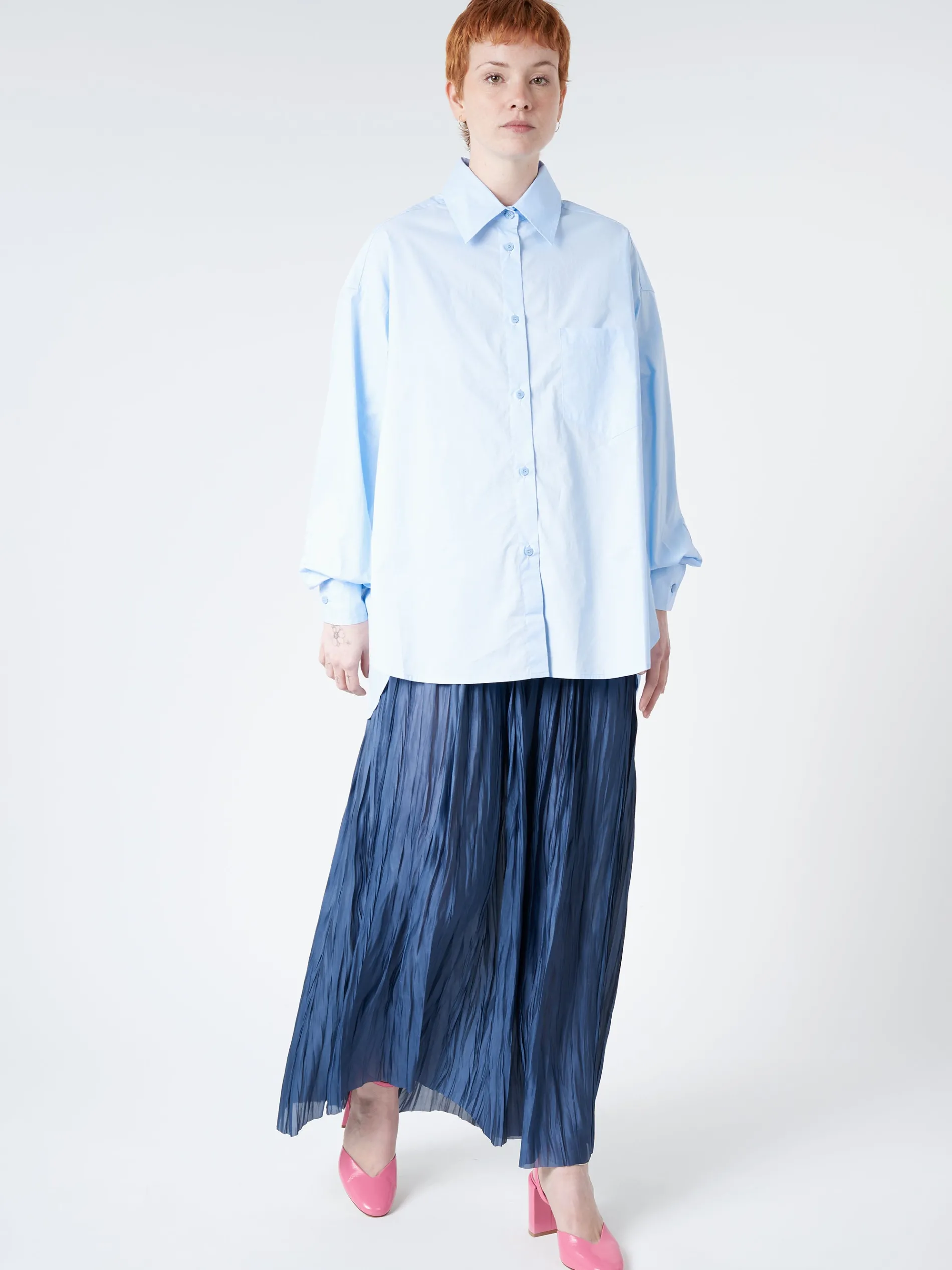 Made of crisp cotton poplin, this oversized button up shirt updates the classic silhouette with its voluminous cut.