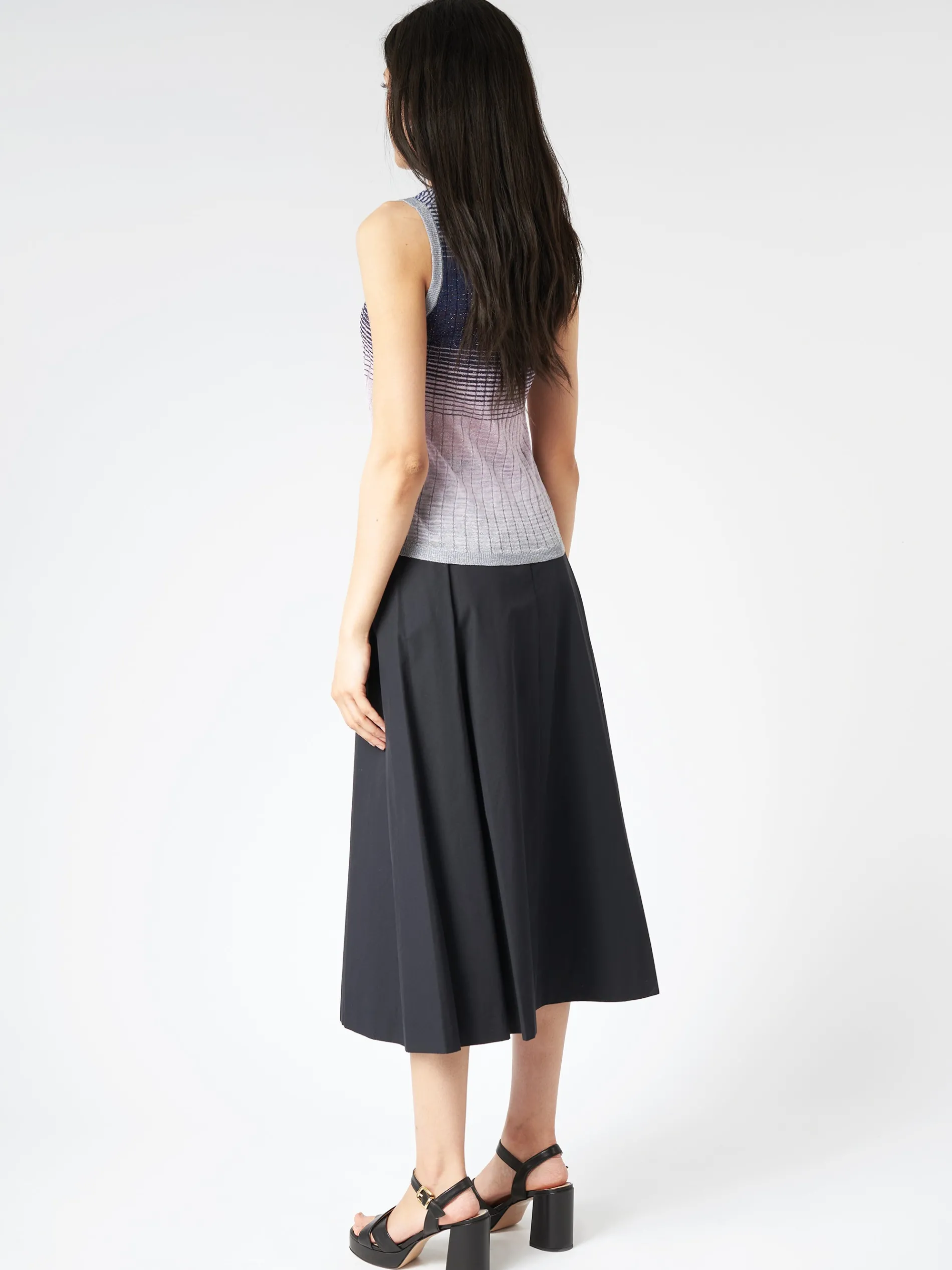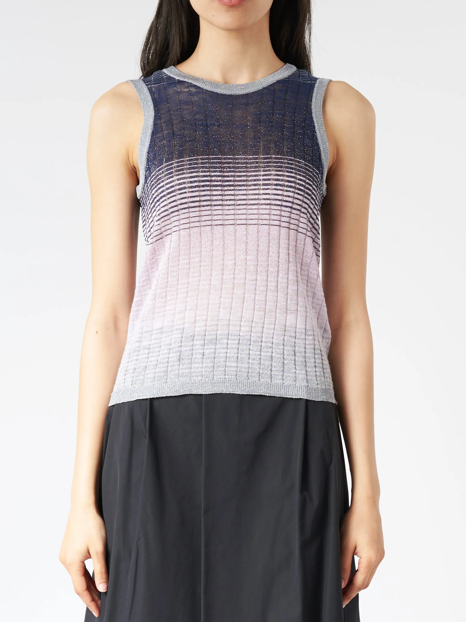 Delicate ribbed knit tank top made of linen and shimmery lurex, featuring a multicolor striped pattern with an ombré effect, reminiscent of a summer sunset.