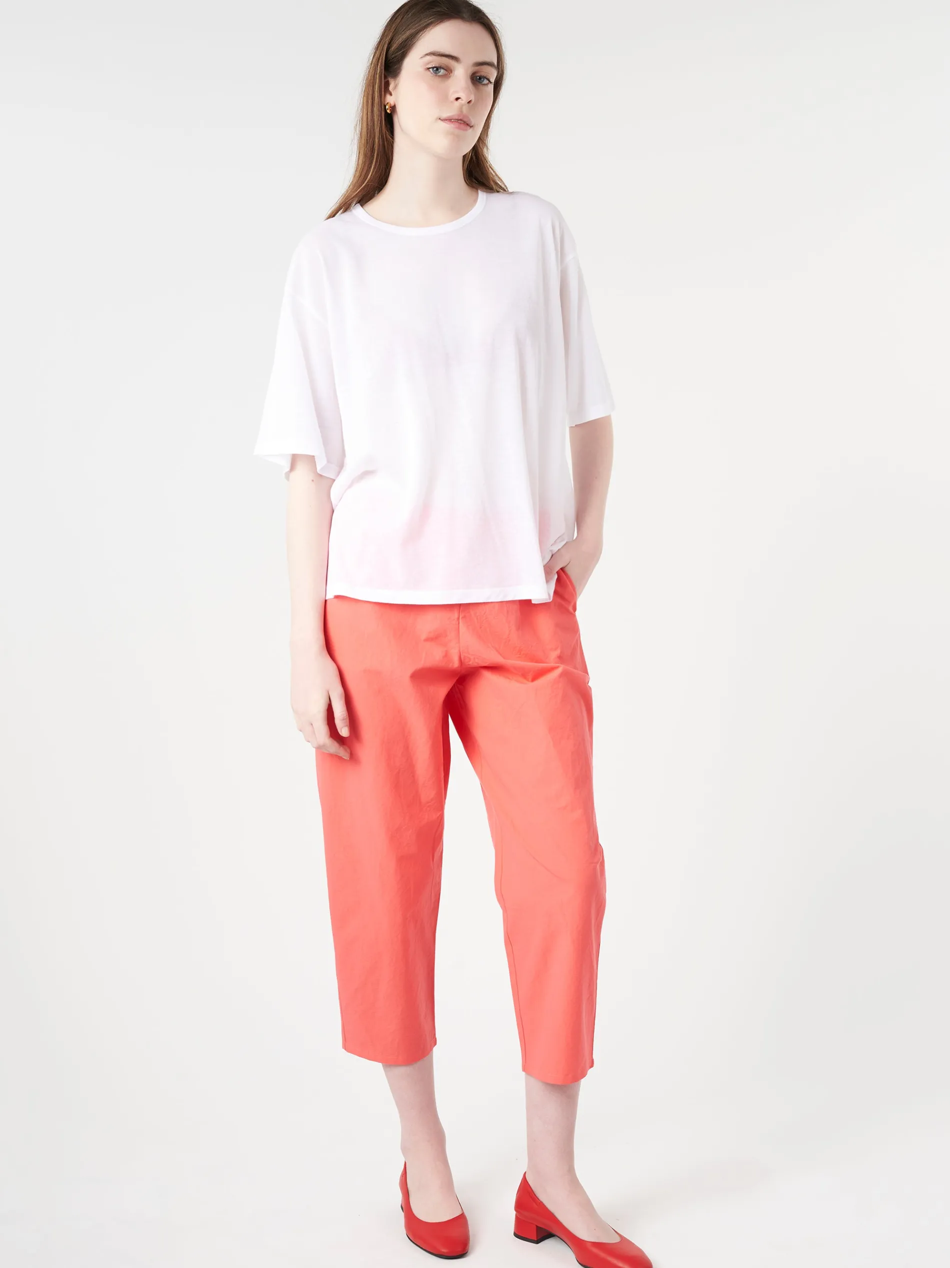Basic essential t-shirt in cotton blend fabric, featuring a relaxed fit and characterized by clean hems.