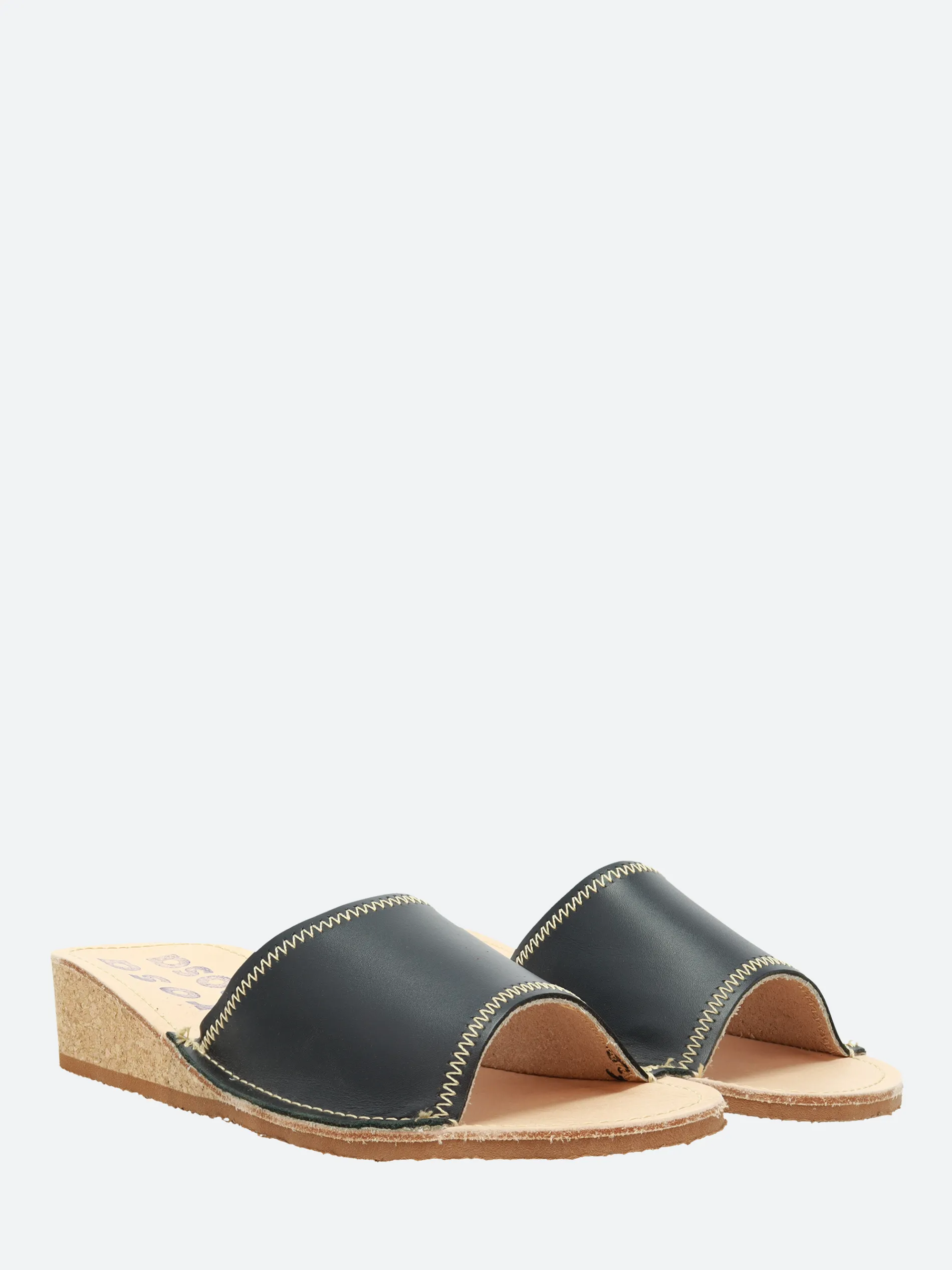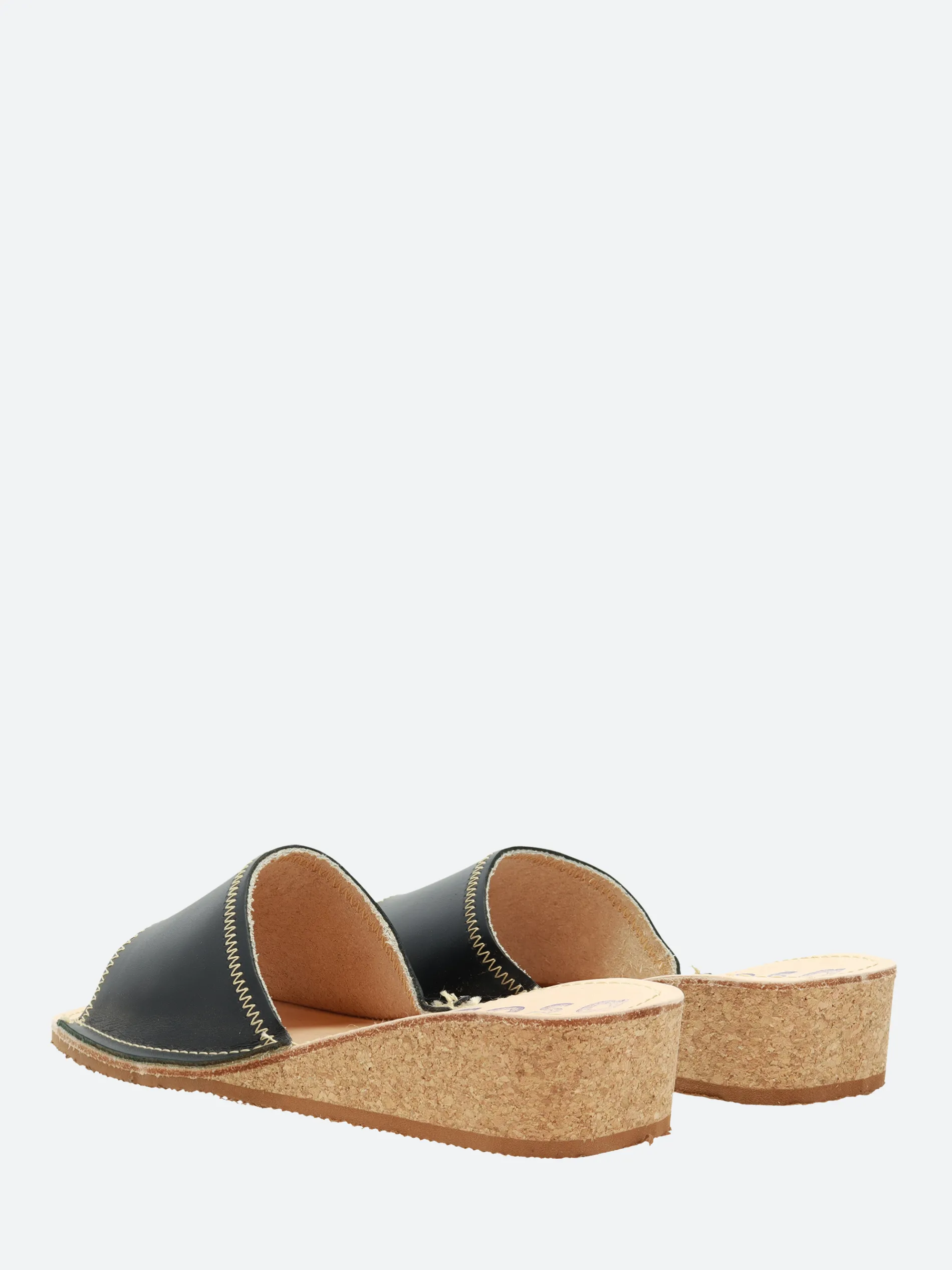 Comfy leather bandage across the foot for a secure fit. Sits on a soft, very comfortable lightweight cork wedge.