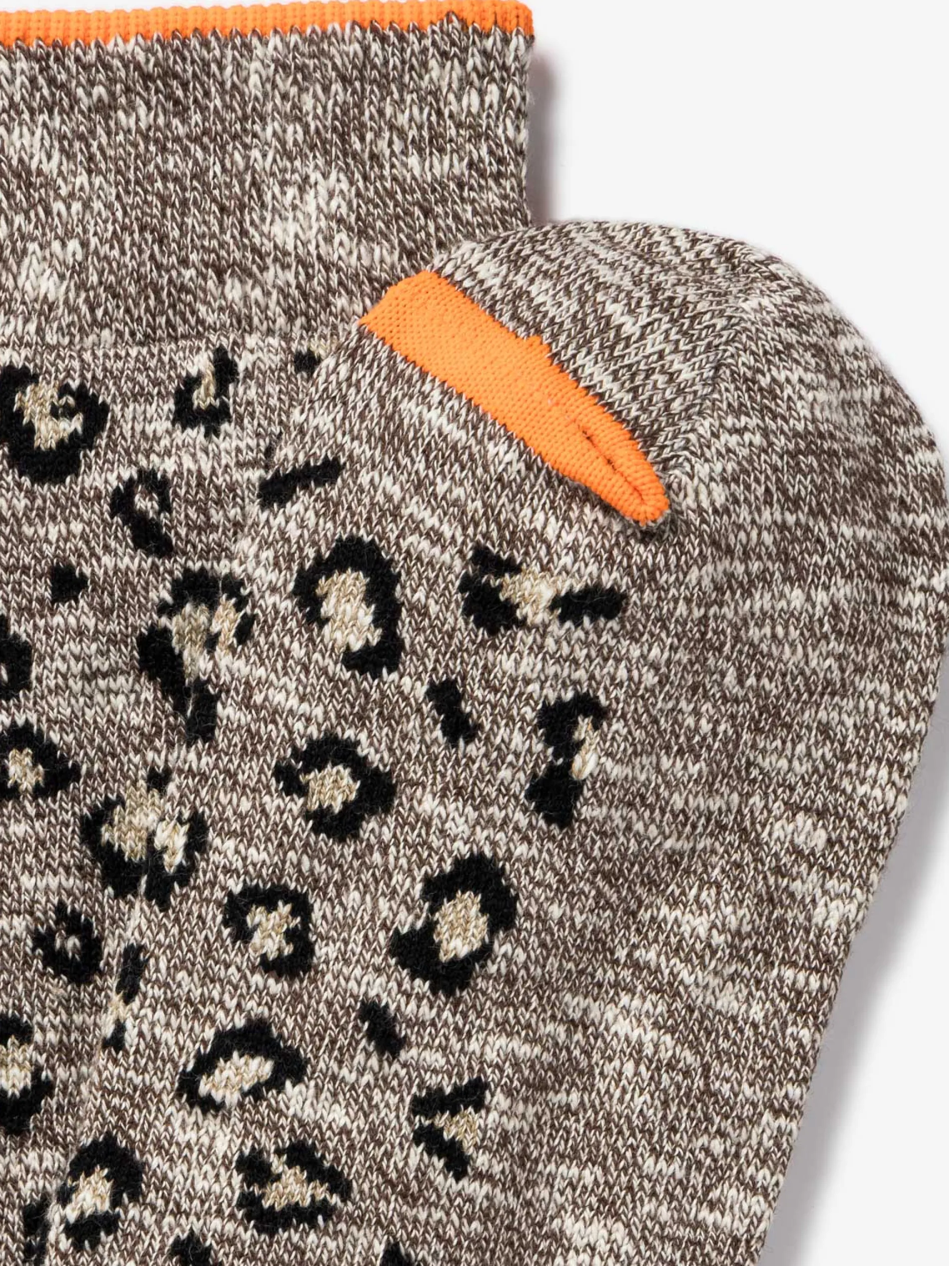 These mid-weight socks are knitted with slub yarns, which gives them a workwear look. The all-over leopard print pattern and neon details add a touch of pep.