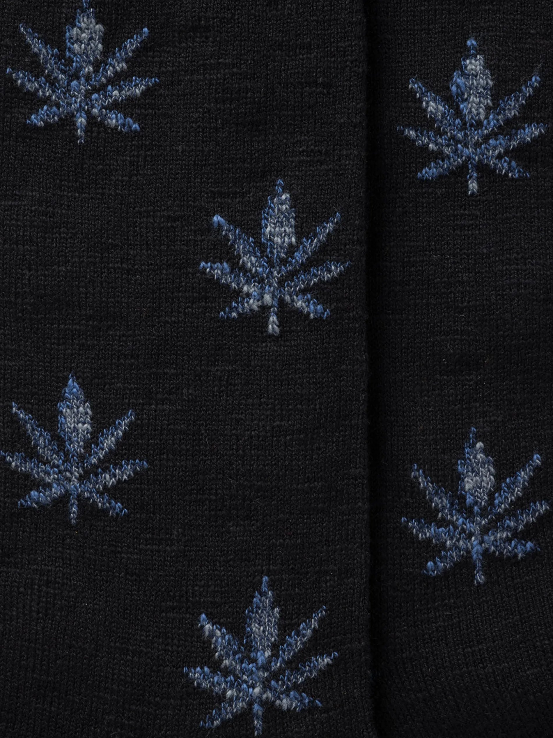 Relaxation, comfort, and a touch of provocation with these patterned socks. A jacquard of cannabis leaves covers this slub cotton model.