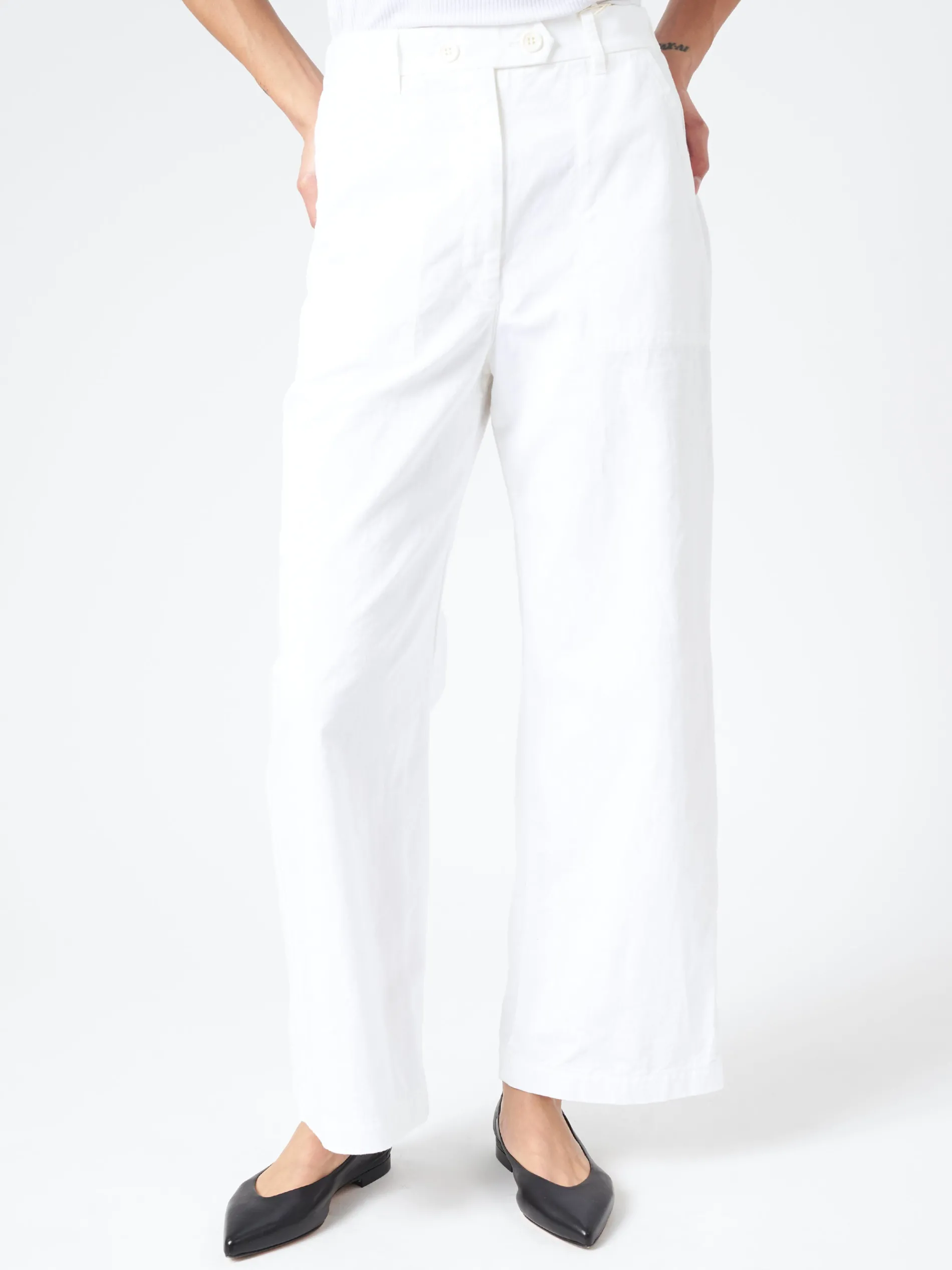 The Carole Pant is crafted from a high twisted twill, a crisp durable fabric with strong thread density that maintains softness.